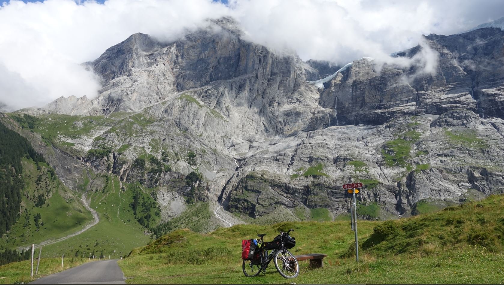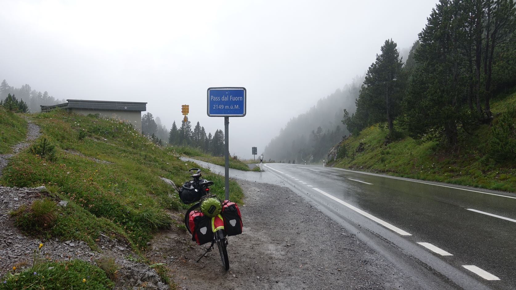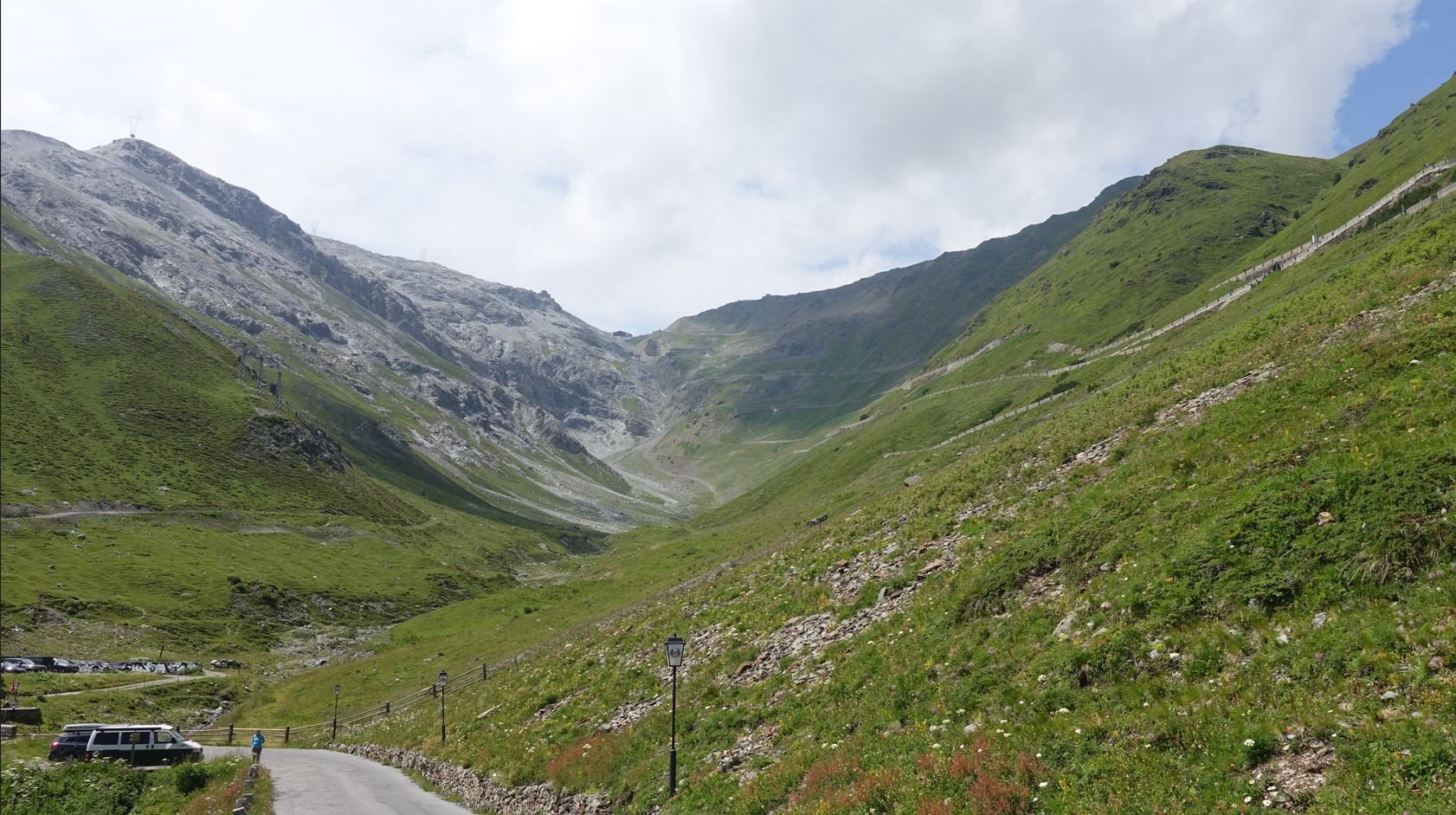 De aanloop naar de Albulapas (20 km) was liefelijk met leuke dorpjes, én koffie natuurlijk. Ik gebruik ’s ochtends op de camping mijn brander niet en ik stop dan bij de eerste de beste koffie gelegenheid. Vandaag was dat al op de camping maar een mooi café onderweg kan ik ook moeilijk weerstaan. Voor de top van de Albulapas een indrukwekkend kippenvelmoment. Eerder dit jaar was Gino Mäder hier verongelukt en er was spontaan een herdenkingsmonument opgezet.