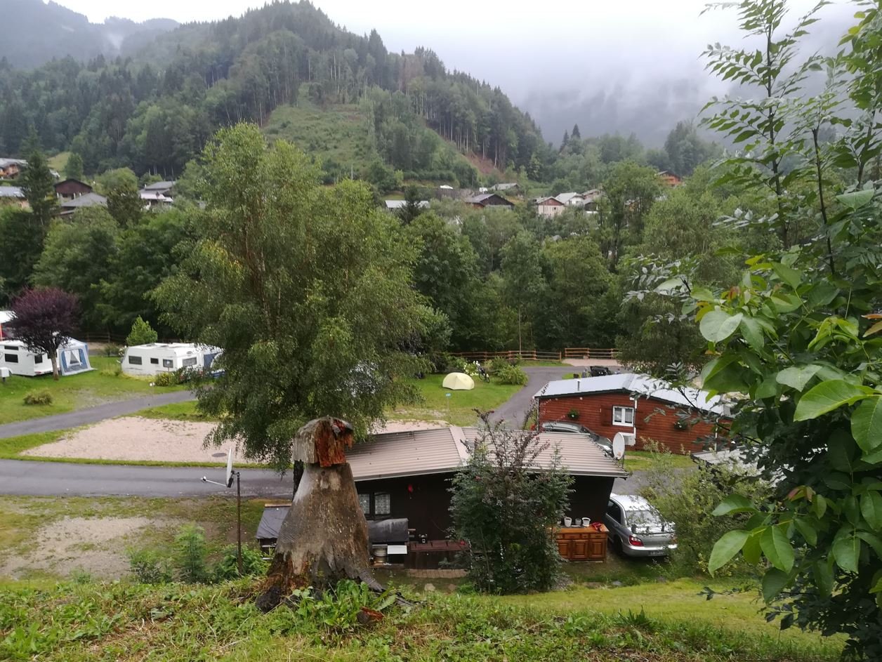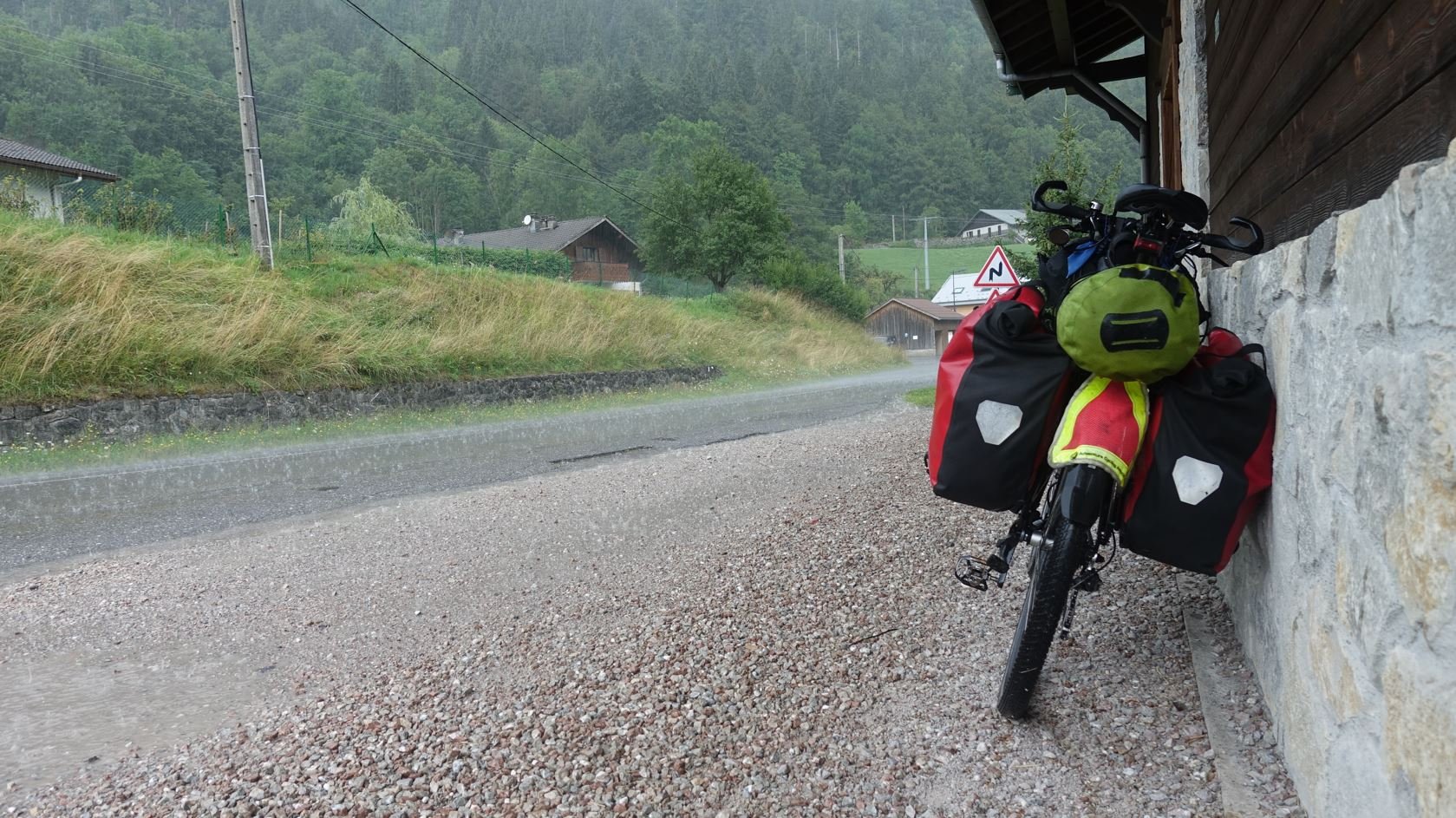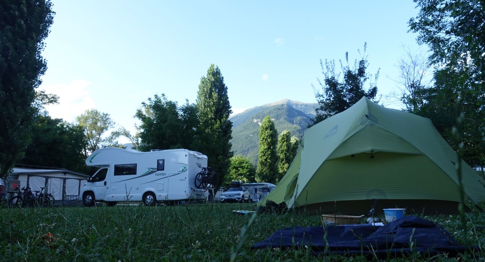 Camping in Thusis was vol maar dat gold bij lange na niet voor het tentenveldje. Daar ook de eerste vakantiefietsers ontmoet, een echtpaar uit Nederland.