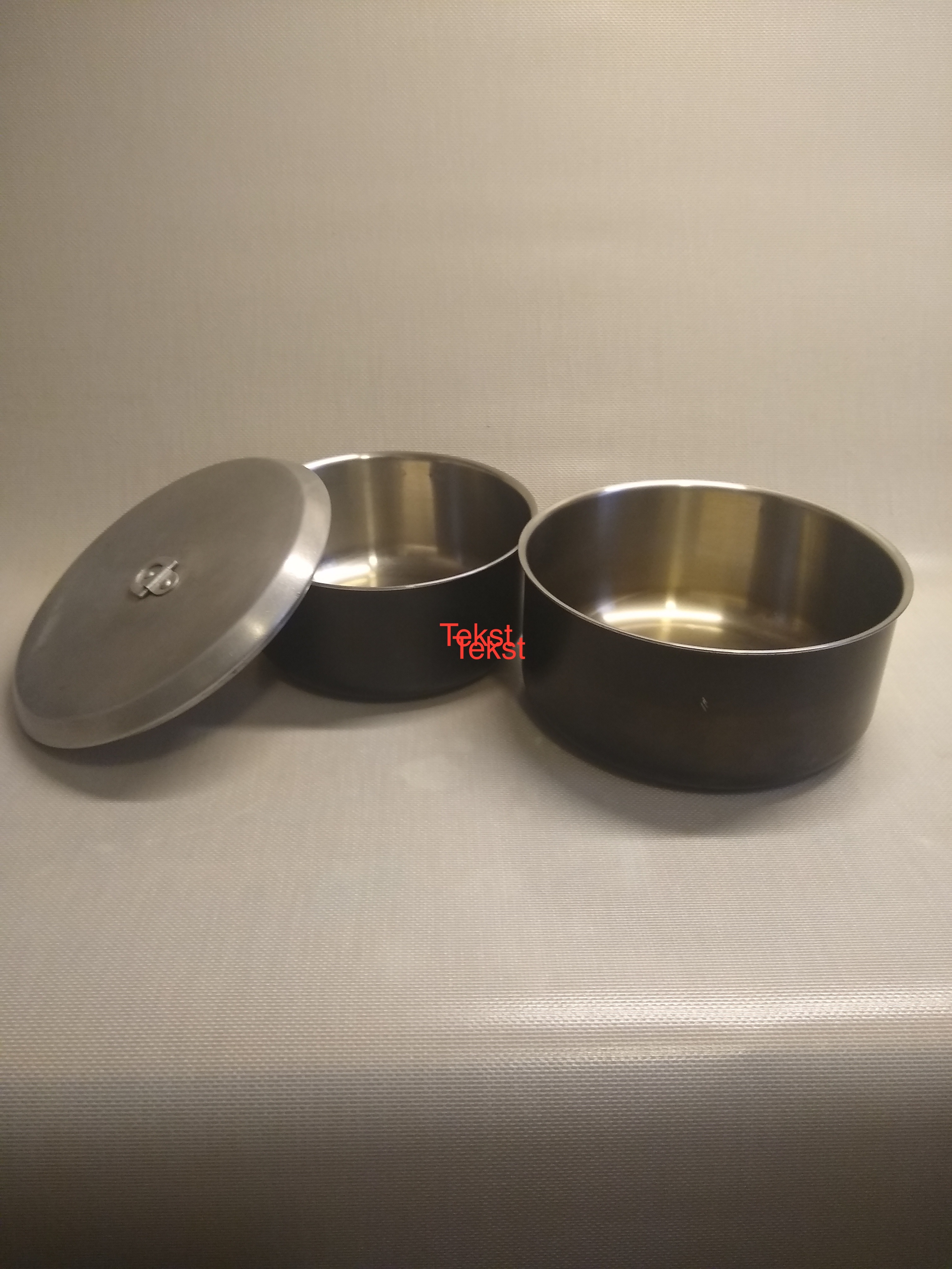 Pannetje 1,2 l. + pannetje 1 l. + (niet origineel) aluminium deksel.