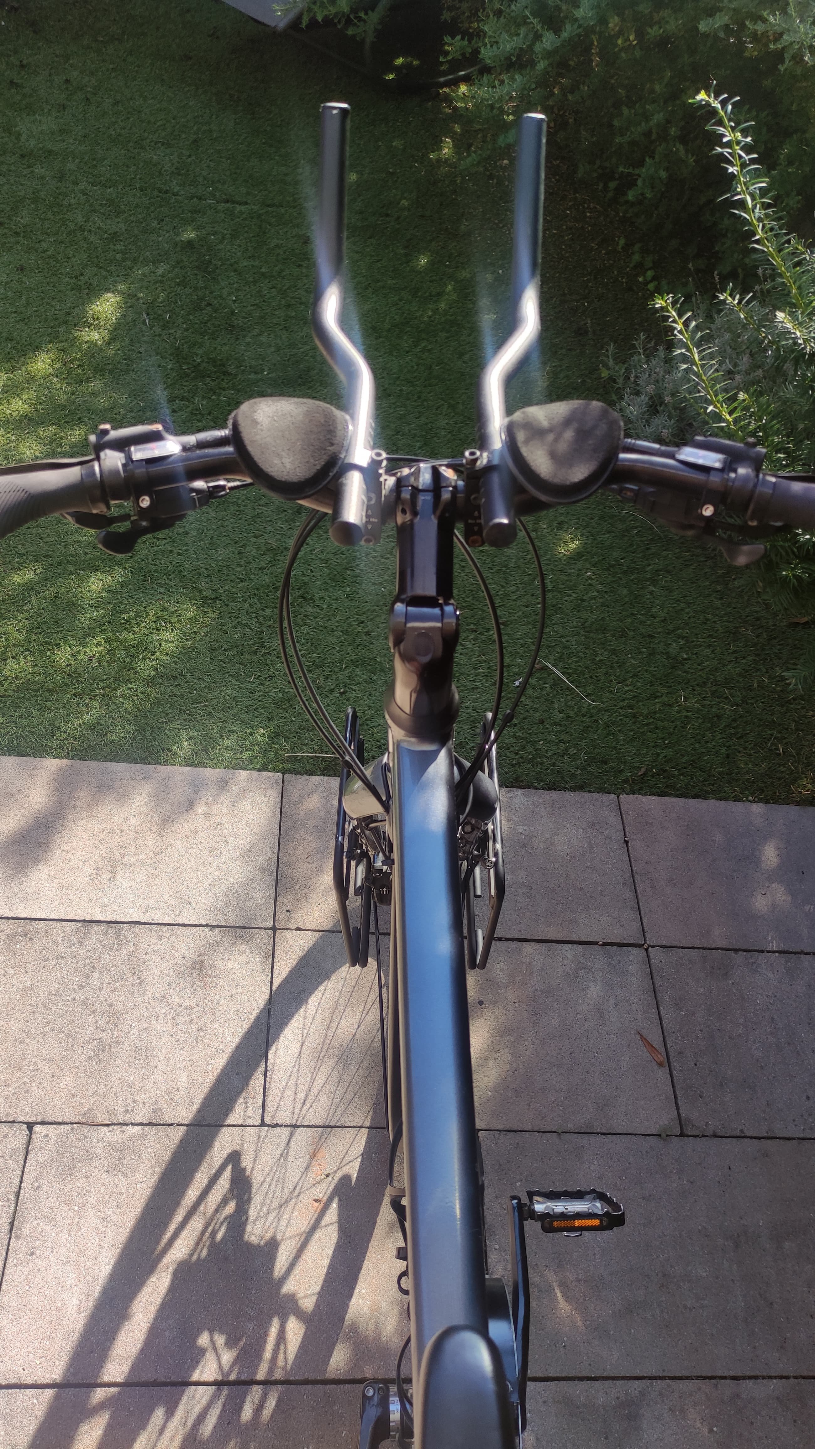 Verder uitgerust met 3 bidonhouders, voordrager en een tijdrit stuurtje voornamelijk fijn om even een andere houding aan te nemen of bij een kaarsrechte weg als je wat snelheid wilt maken. Wat ontbreekt is de koplamp, die wil ik namelijk zelf graag houden. Een achterlamp zit er wel op.