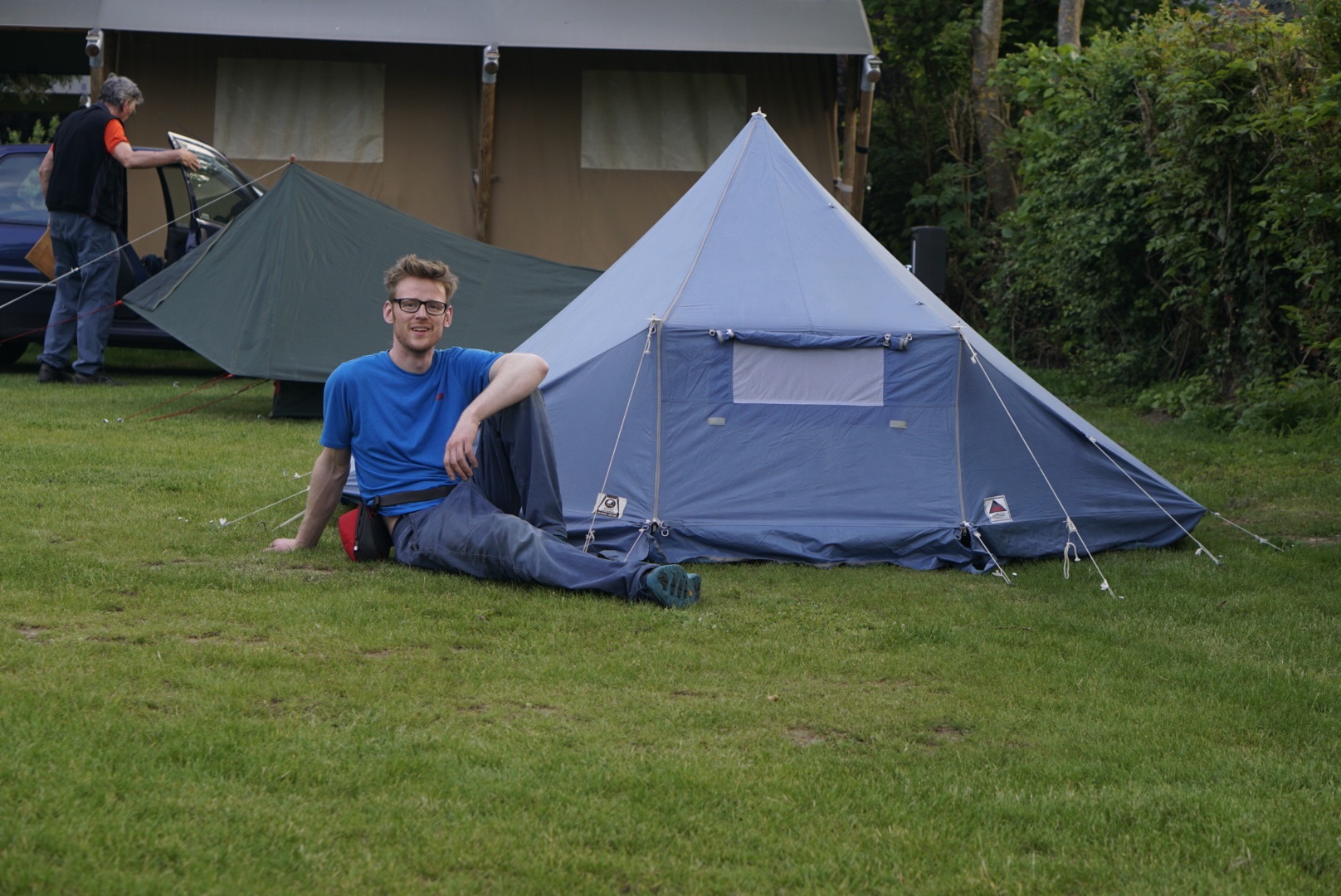 Esvo katoenen tent. Weegt 4,2kg exclusief haringen, dus voor een katoenen tent redelijk licht.