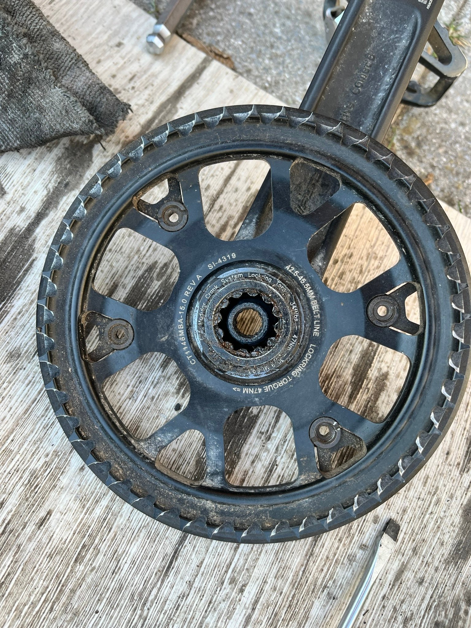 Na meer dan 20.000km is de Gates riem+tandwielen van mijn Koga dringend aan vervanging toe. Het voorste tandwiel is aan de crankset bevestigd. Nu kan ik het type nummer (CT1146MBA-15.0 REV A SI-4319) dat hier op staat nergens terug vinden. (zie ook foto), ook niet op de Gates site.