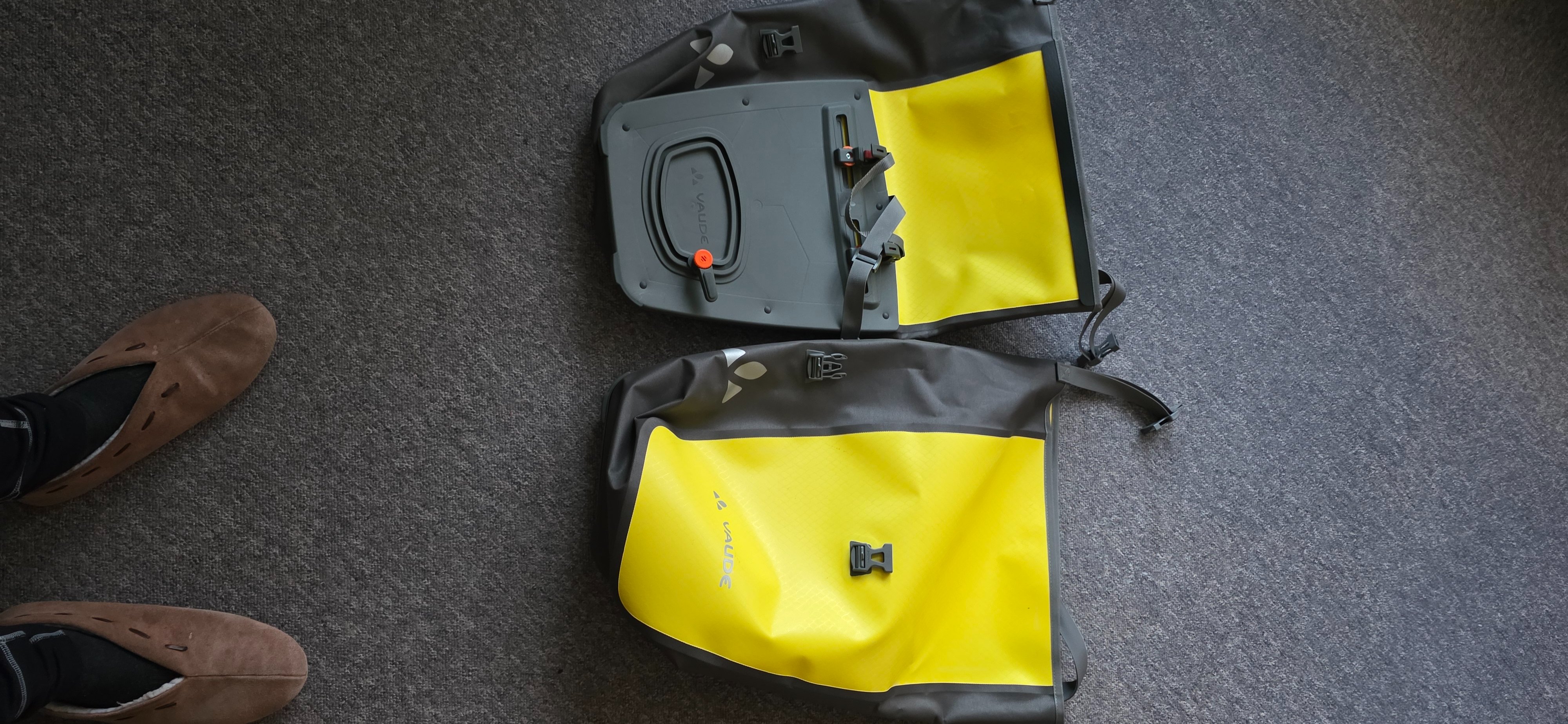 Te koop nieuwe Vaude gele fietstassen 48 liter.