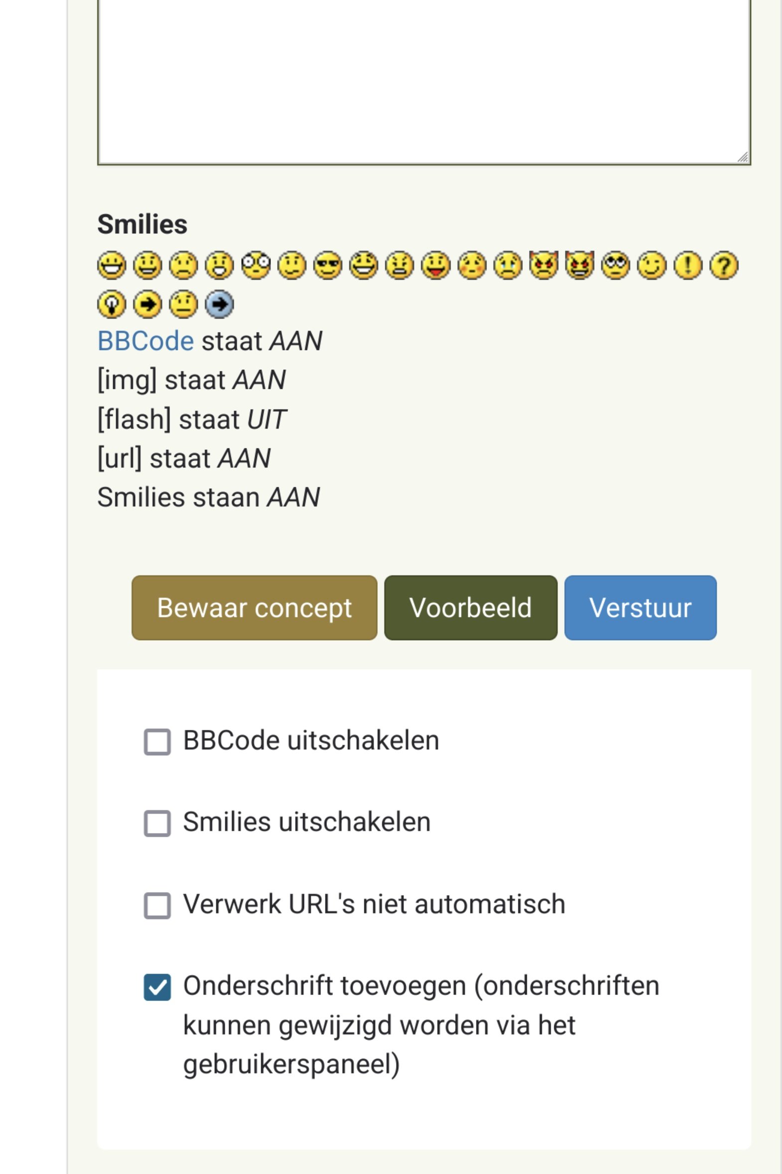 tag:Bij mij staat die ('Bewaar concept') gewoon onder het berichtvak, naast Voorbeeld en Verstuur. Misschien maakt het uit welk platform/browser/weetikveel?Velotraumer schreef: ↑ma 20 jun, 2022 23:18Net met een pb bezig en wilde deze even opslaan als concept, maar kan de knop ‘als concept opslaan’ niet vinden. Kijk ik erover heen of wie kan me even helpen?