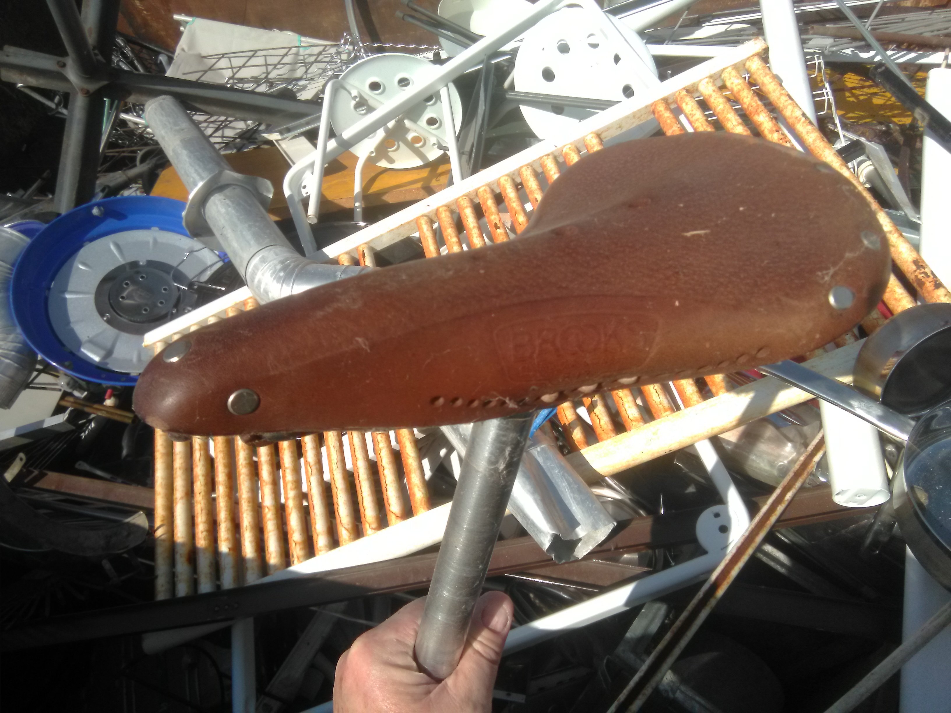 Dus als je een tochtje aan het fietsen was met je tegelscherven en je grofvuil en je kwam langs de stort, én je vindt het hilarisch om een zo goed als nieuw Brookszadel in de container te vinden dat je niet mee mag nemen, dan is je plaatje hier helemaal op zijn plek.