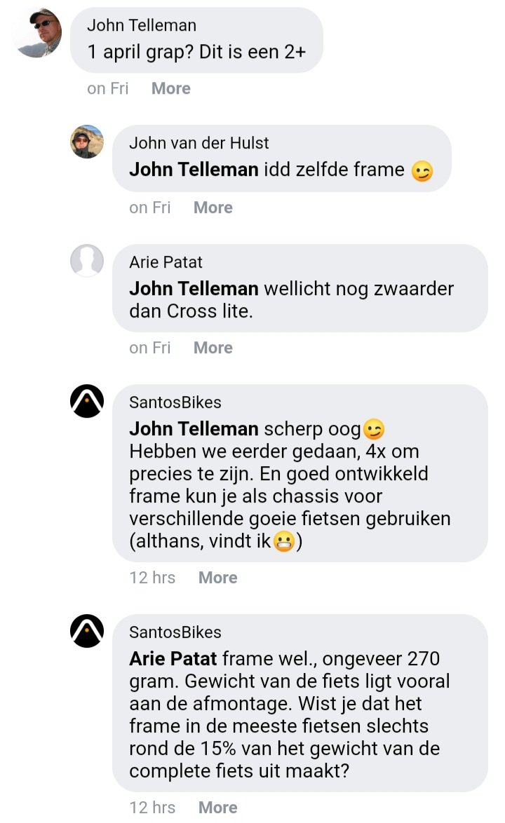 Screenshot van de Santos Facebook pagina, de reacties onder de Gravelmaster foto: