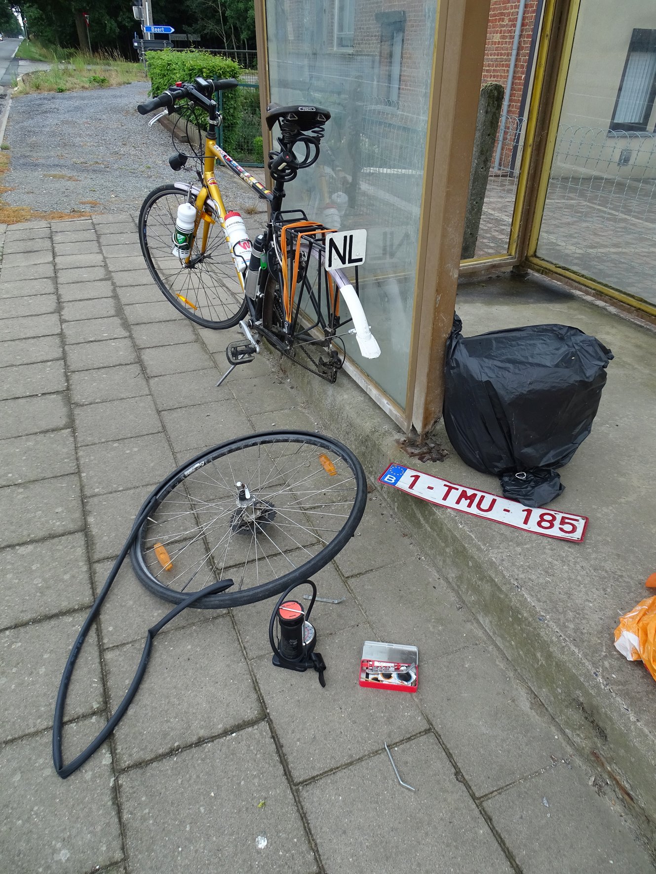 Helemaal goed Frank. De fruitbomen kloppen. Kort voor Pepingen, waar ik een lekke band kreeg door een scherp steentje, dat in een naad van het betonnen fietspad zat. Pang, dan effe in een busabri van De Lijn de zaak weer gerepareerd. Niet geplakt maar deed er een nieuwe binnenband in. Gaat sneller. Later op de camping bij Geraardsbergen geplakt.