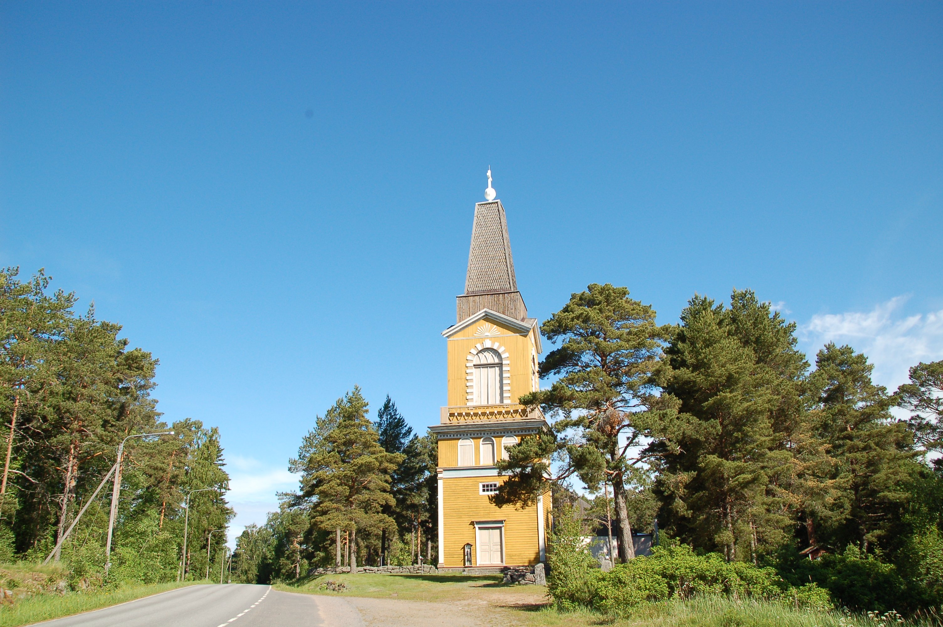 Frank mag verder. Anders dan bij ons staat hier de toren vaak los van de kerk zelf. In dit deel van Finland wordt net als op Åland Zweeds als eerste taal gesproken, het viel me al op aan de straat en plaatsnaamborden die hier in 2 talen worden weergegeven, net als dat ze dat in Lapland ook doen maar dan in Sami en Fins.
