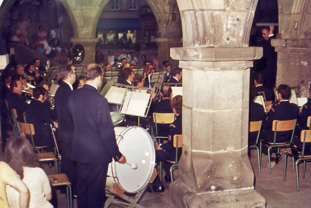 Wanneer ik op reis per fiets ging, kon het wel eens gebeuren dat ik hier en daar een concert of muziekopvoering ging bijwonen. Waar is deze foto genomen?