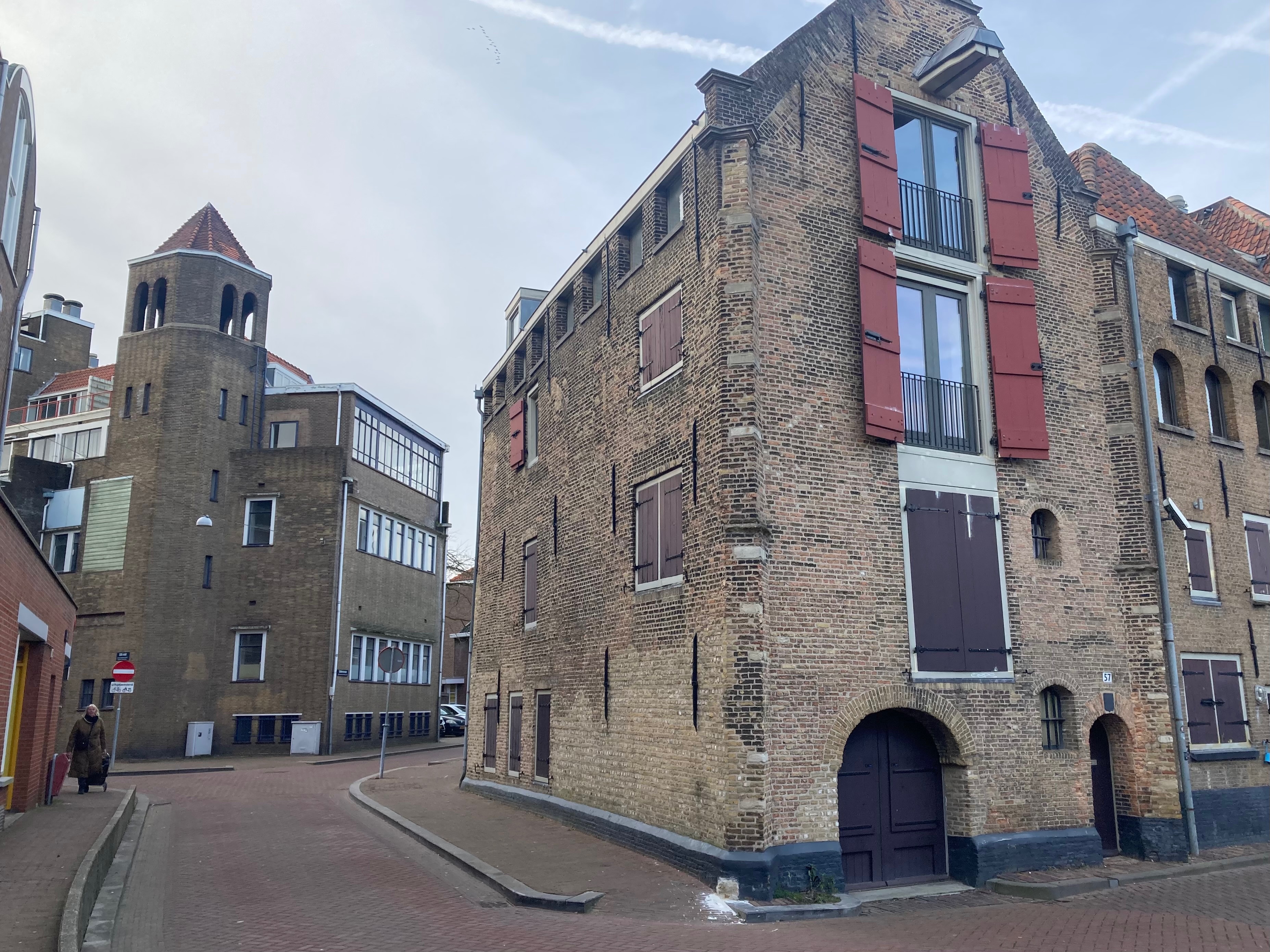 Aan de gelige kleur van de bakstenen (IJsselsteentjes?) ruik ik Zuid-Holland. Met allerlei zoektermen gezocht, Schiedam, Vlaardingen, Dordrecht en zo meer. Maar noppes. En dan die merkwaardige toren links. Geen kerk. Ook geen slangentoren van de brandweer, daar is het gebouw te kantoor-achtig voor.