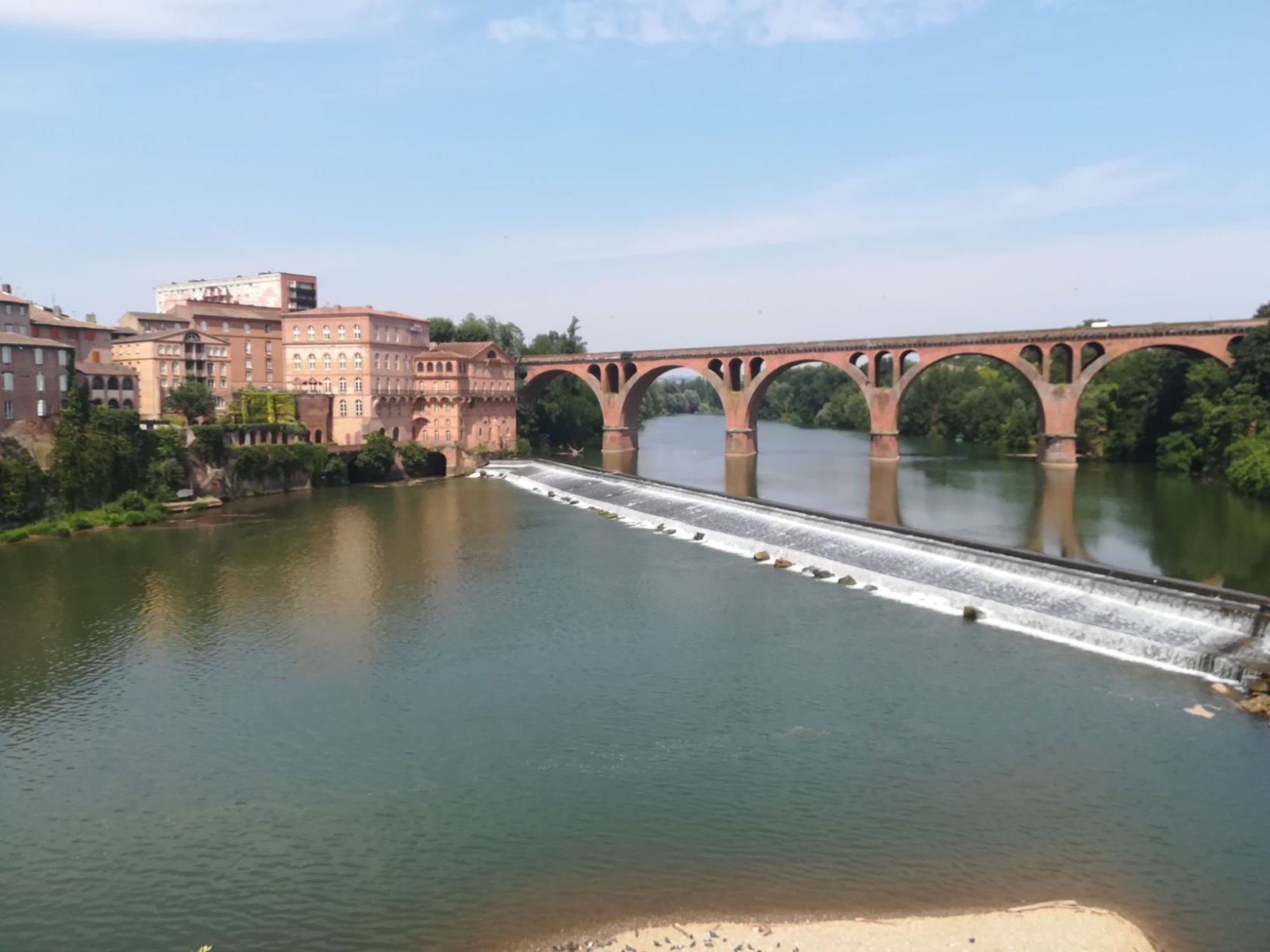 De foto is volgens Streetview vanaf Pont Vieux (met ernaast een watermolen!) genomen en de afgebeelde brug, met diepe nissen tussen de bogen, is de Pont du 22 Août 1944.