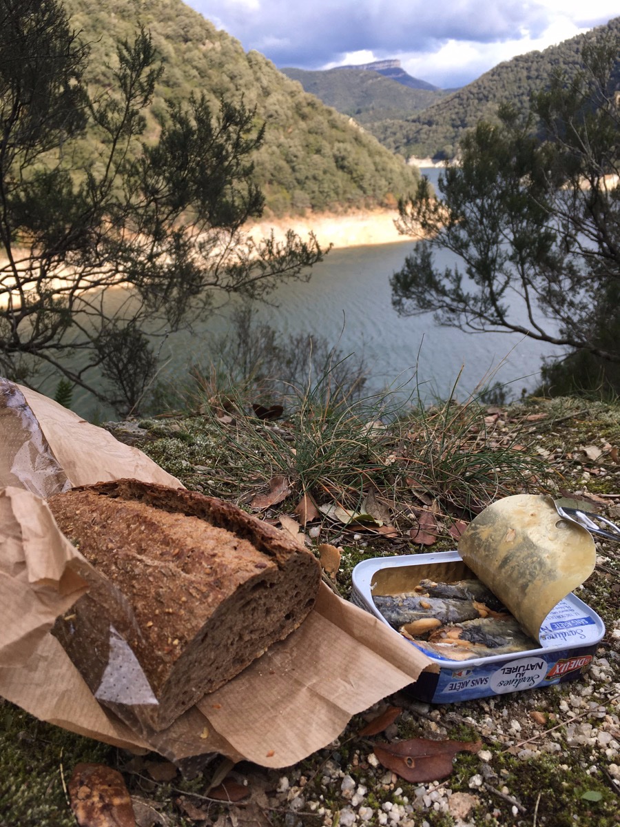 Nadien volgt nog veel mooie weg. In Agullana kan ik in het zonnetje op de Plaza Major eten met straalblauwe hemel boven mij. Ik besluit de European Divide te blijven volgen want dit is waarom ik naar Spanje wou komen: mooi weer en mooie gravel.