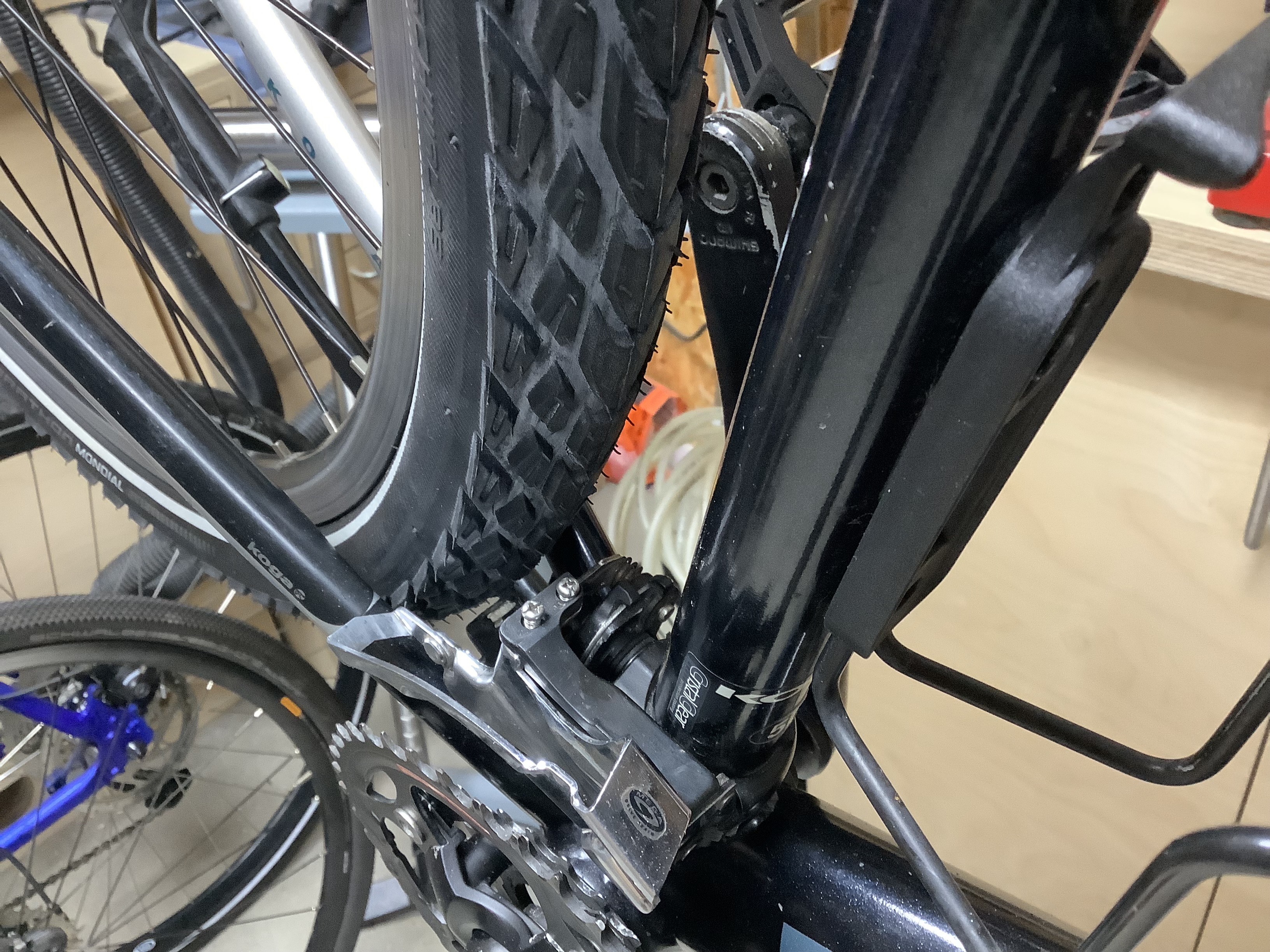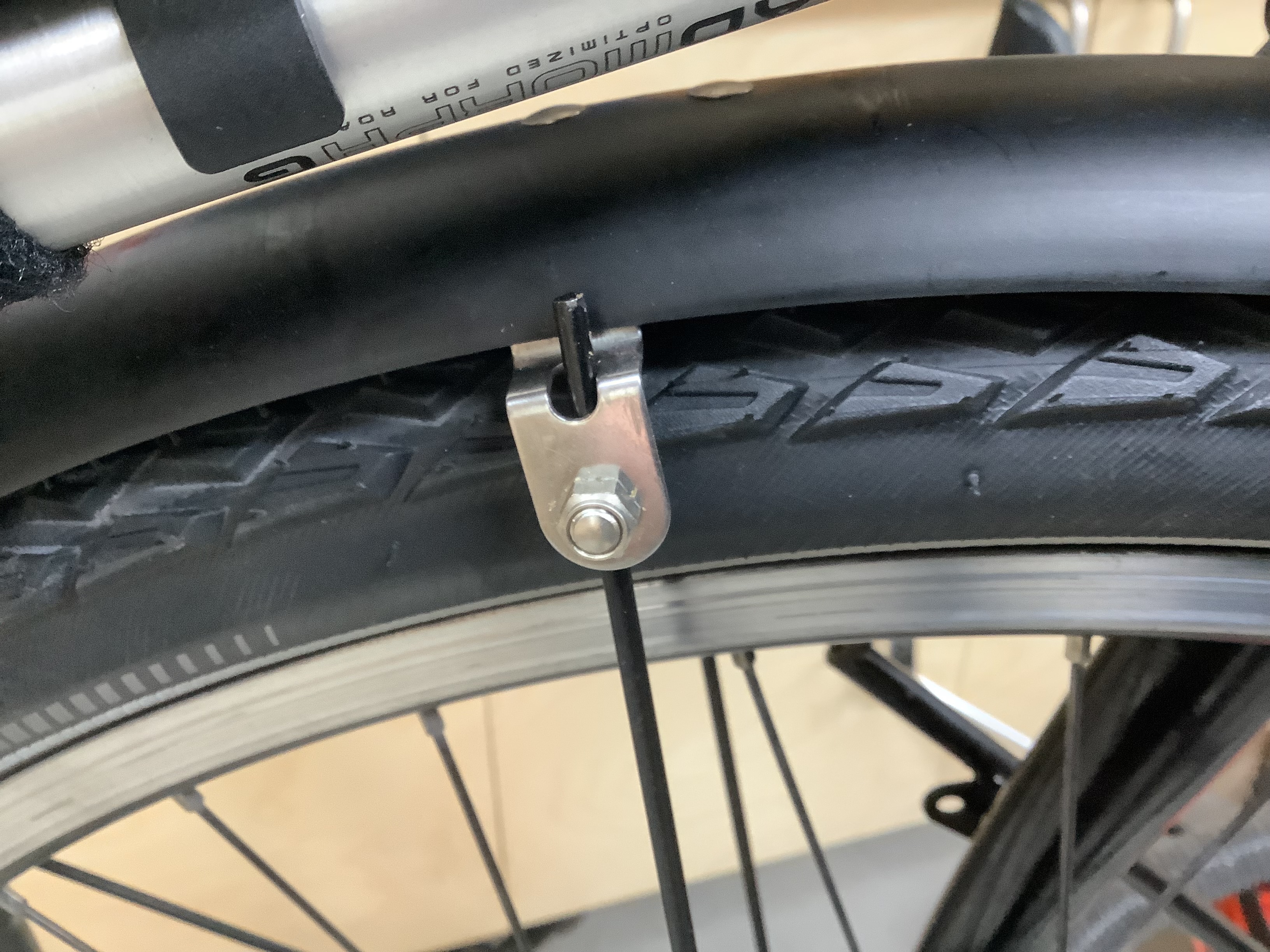 Bij liggende deel van de achtervork heb ik idd de minste ruimte. Maar dan vooral in de hoogte van de band. Daar heb ik geen ruimte meer voor het spatbord. Die heb ik dus, zoals eerder vermeld, afgekort tot de plaats waar m’n slot zit.