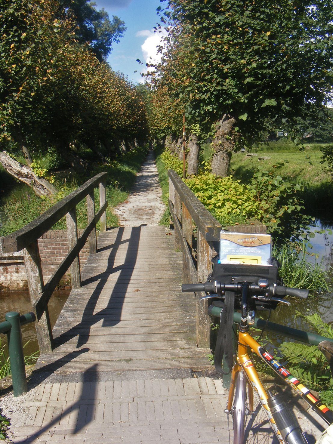 Dat is geen bord, maar een molentijdschrift, dat uit m'n stuurtas stak. Ik was op fietstocht langs molens. Het gele kaartje daarvoor bevat een telefoonnummer voor het geval mij iets zou overkomen.