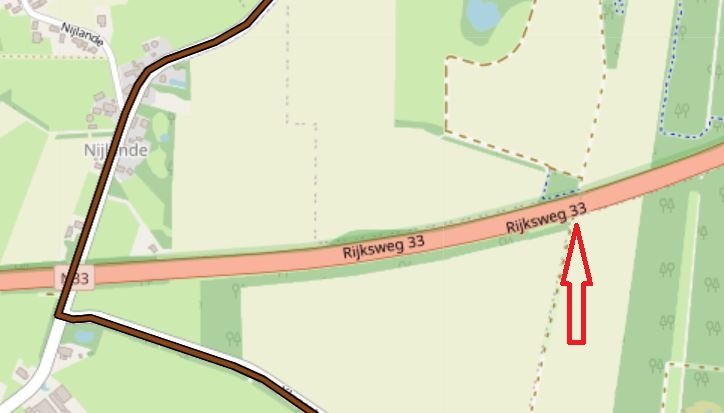 Shit, net de N33 niet lang genoeg gevolgd. Ik begon vanaf Nijlande maar na een paar honderd meter dacht ik: nu komt-ie niet meer. Daarna nog vruchteloos andere kruisingen met snel- en autowegen bekeken. Enfin, toch leuk om weer eens het gevoel te hebben dat ik hem had kunnen hebben.