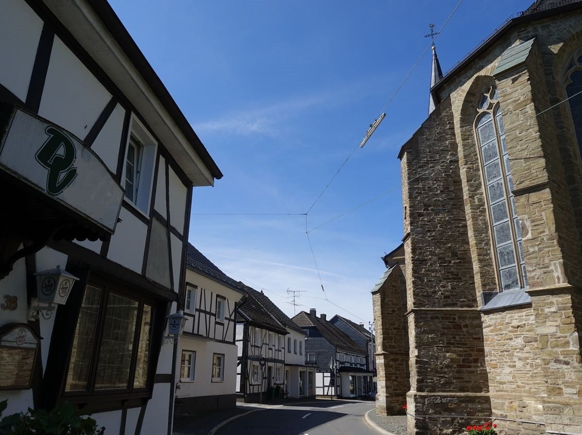 Ik heb even gezocht op kerken in oudere dorpjes of stadsdelen binnen de drie Duitse gemeenten waar volgens Wiki nog trollybussen rondrijden. Gezien JanH's eerdere fietsreis door Duitsland ligt Solingen voor de hand. Toch kon ik de plek zo snel niet vinden. N.B. Voor het nalopen van de busroutes had ik geen geduld.