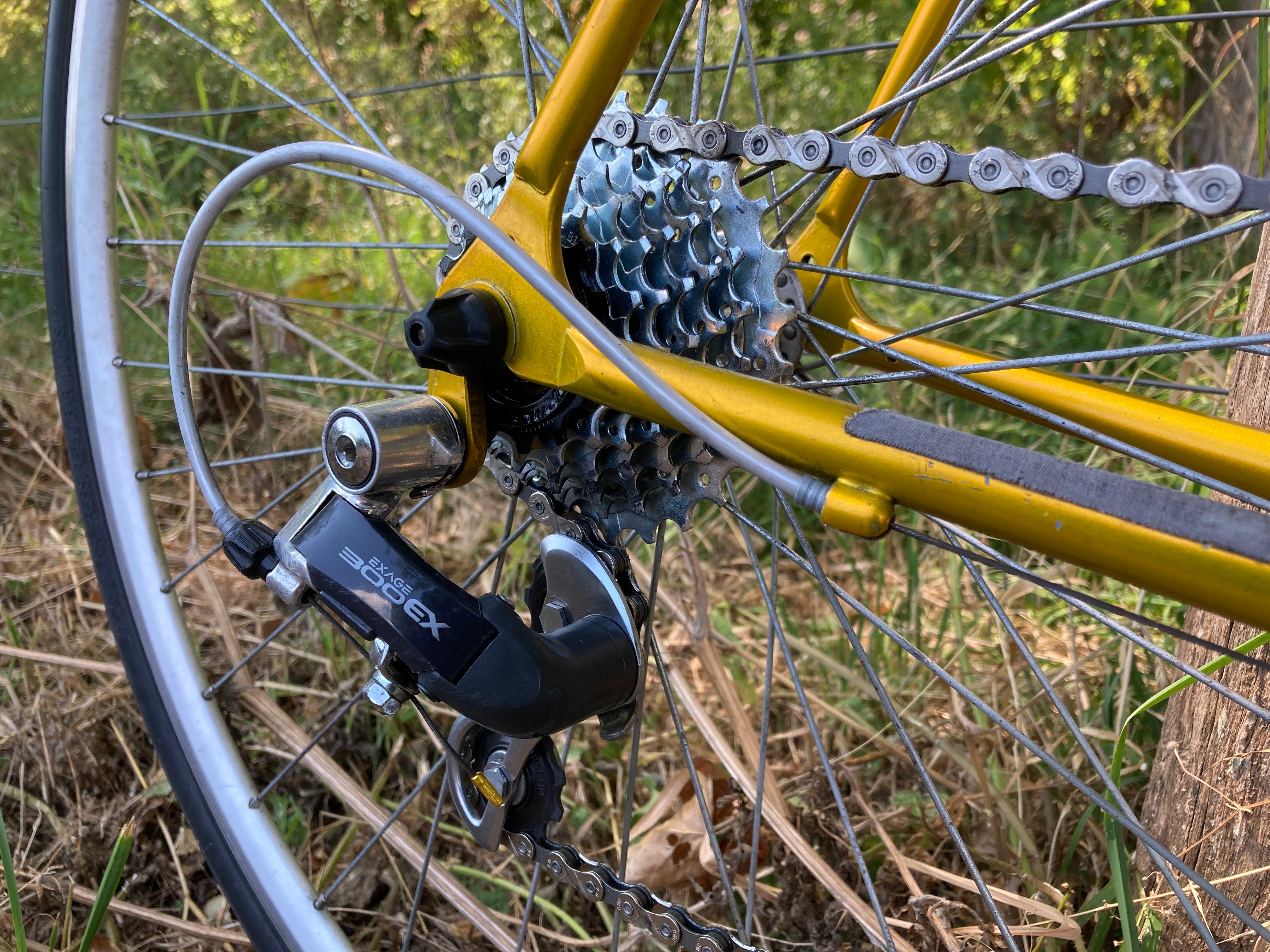 Eind jaren '80 reed ik voor het laatst nog met downtube index shifters. Helemaal vergeten hoe fijn die 7v schakelt! Op deze fiets lijkt alles om me heen net wat relaxter aanwezig dan normaal. Gebeurt uiteindelijk alleen in m'n eigen kop, wonderlijk toch. Wat een toffe fiets.