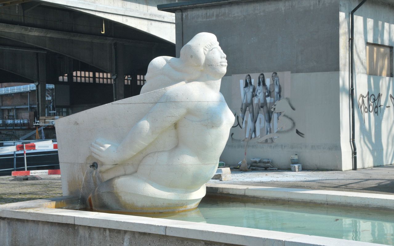 En het antwoord is: Beeldhouwwerk in de vorm van een boegbeeld bij de ingang van de overslaghaven Basel-Kleinhüningen.
