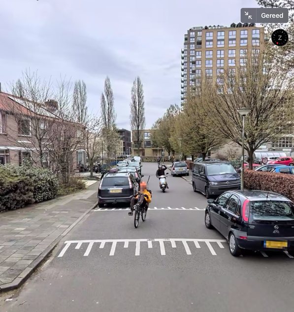 Blijkens het blauwe fietsbord moet er buiten beeld linksonder een fietspad zijn.