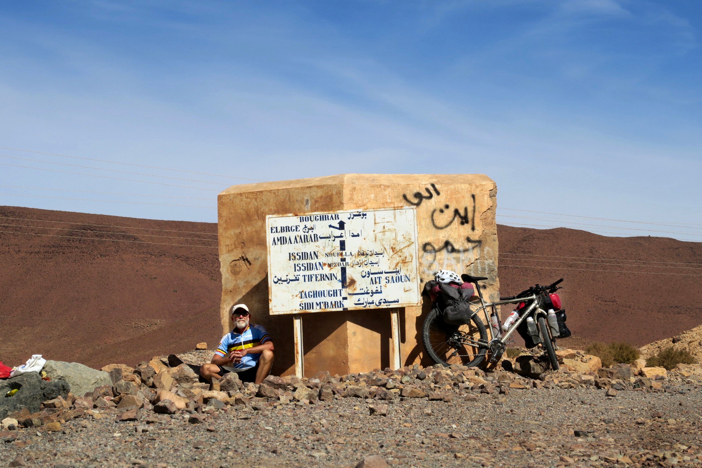 intouchable is (na de landbouw is het toerisme de tweede grootste economische activiteit). Sowieso is de politie omnipresent in de Marokkaanse samenleving, met bvb controles om de 20 of 30 km op de grote wegen. Elke agent maakt er echter een erezaak van om je persoonlijk welkom te heten in het koninkrijk. Eén keer werd ik tijdens een paspoortcontrole door agenten ik in de kraag gevat en op een stoel gezet… waarna ze me begonnen te voederen! In meer afgelegen gebieden speelt nog iets anders: ofwel is er niets, ook geen boom om achter te schuilen en over water zullen we maar zwijgen want bijna alle