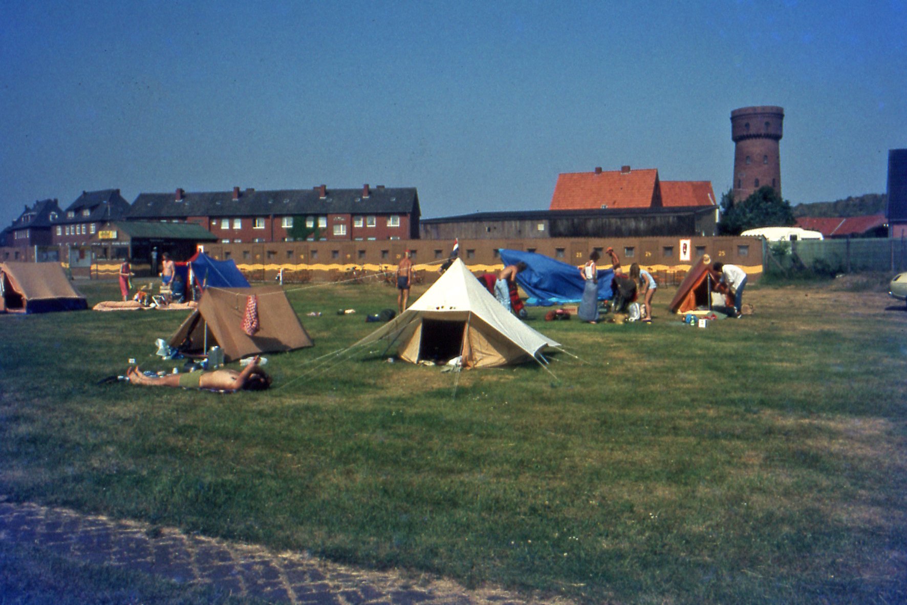 De beide tenten op de voorgrond van mij. De rechter was uit 1958! Nu niet meer, allang vergaan.