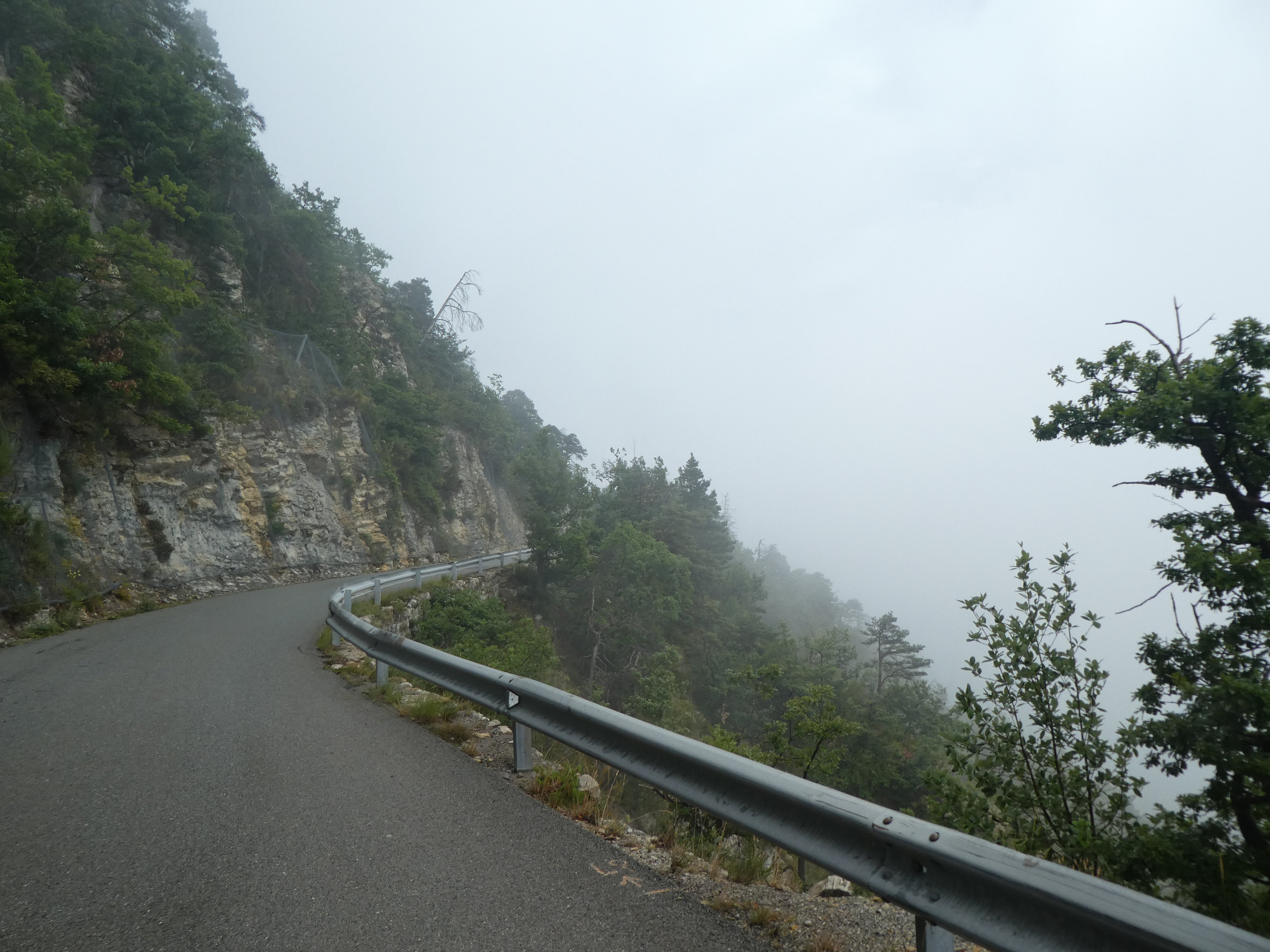 Mooie delen van de route vond ik het stuk tussen Soleilhas en Roquesteron, waar (een beetje) regen, zon en lange tijd in de wolken fietsen elkaar afwisselden.