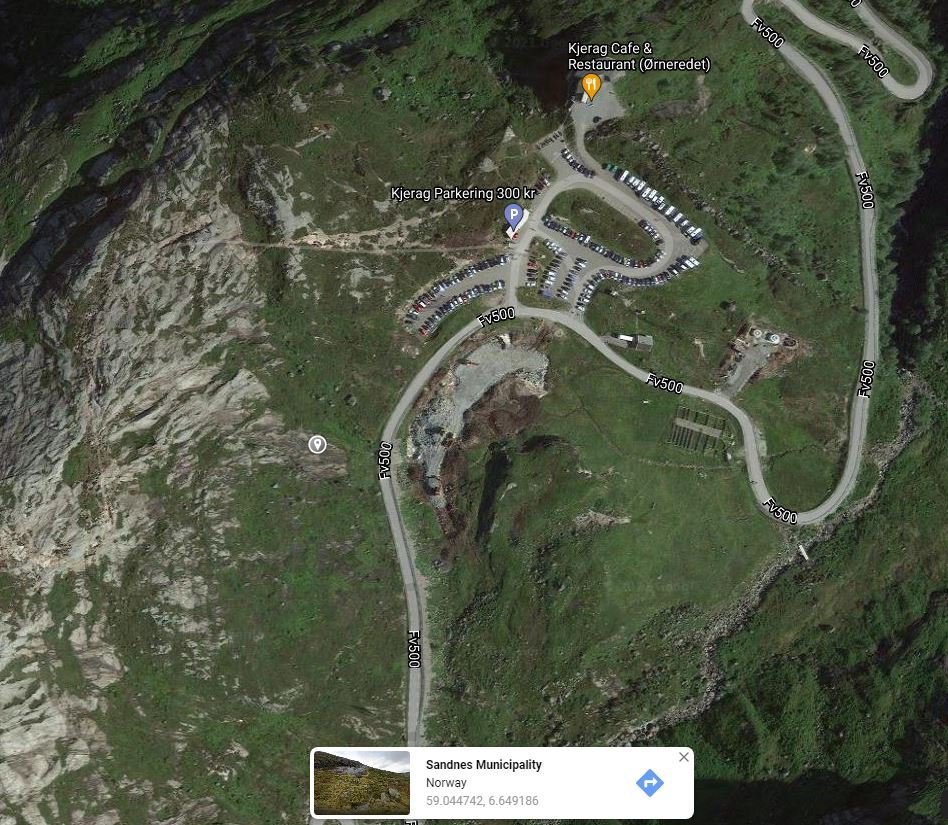 https://maps.app.goo.gl/auar64pGbgvLPp4T8. Deze weg bij Lysebotn is mooi tegen de bergwand aangeplakt: