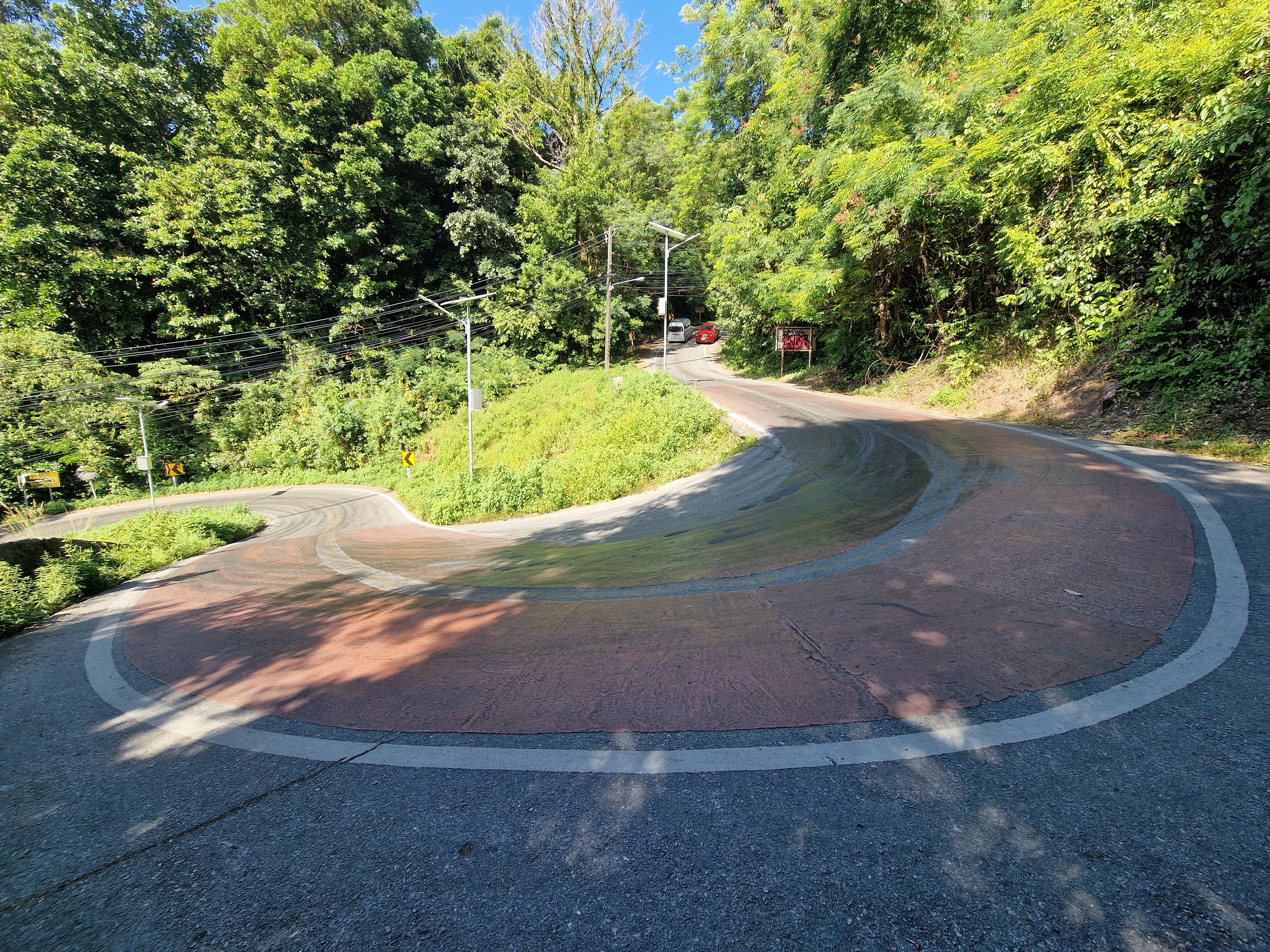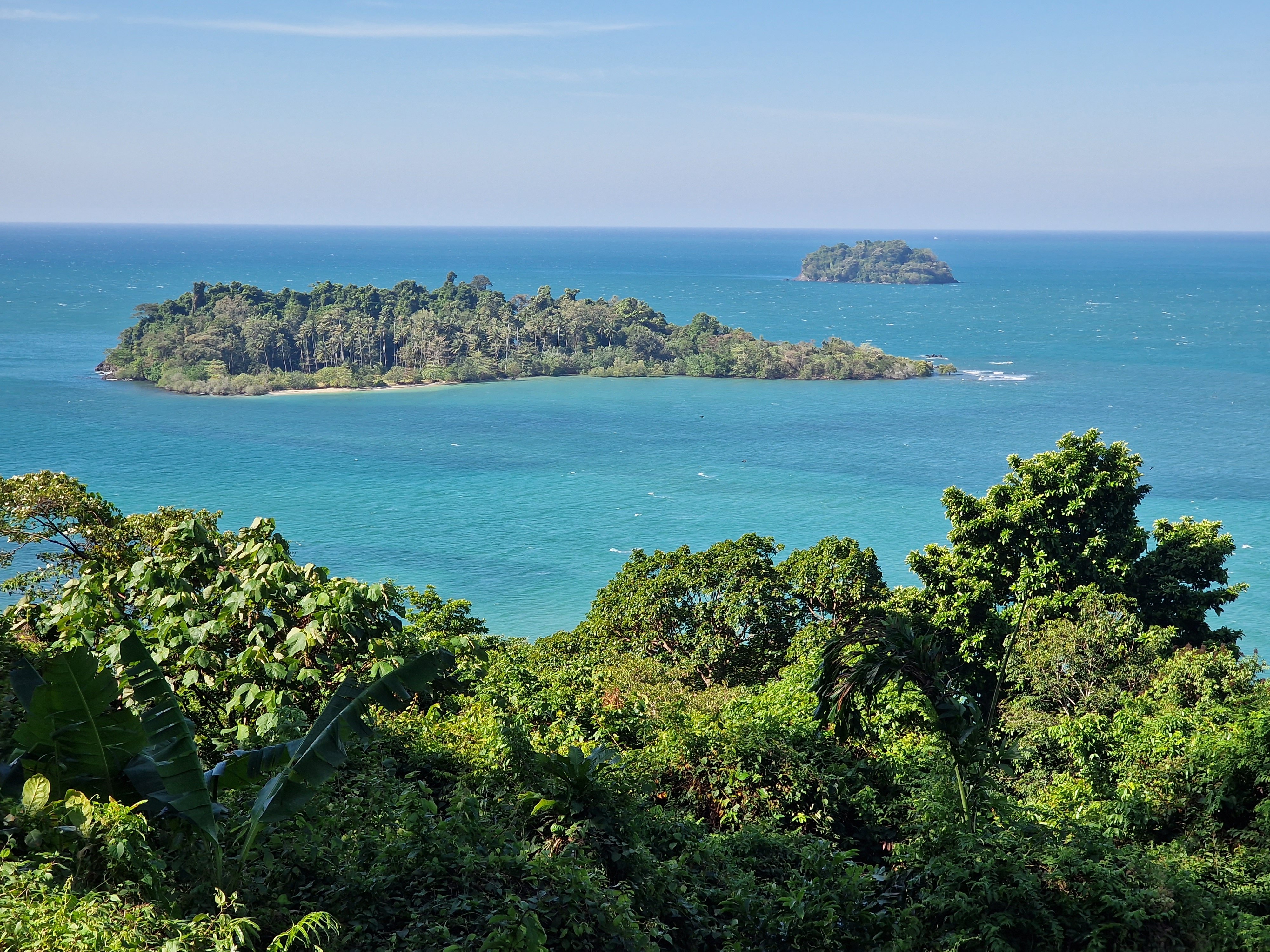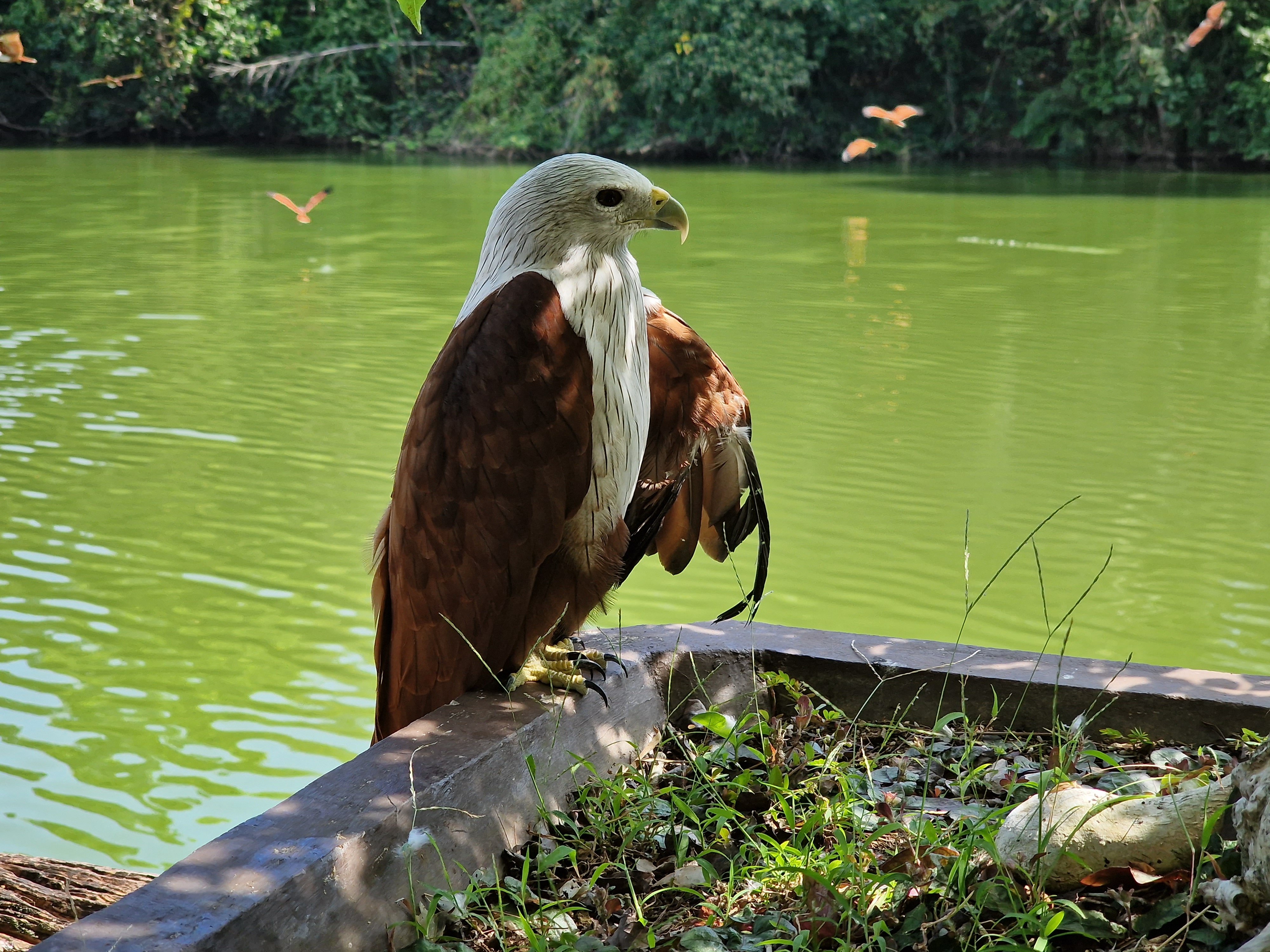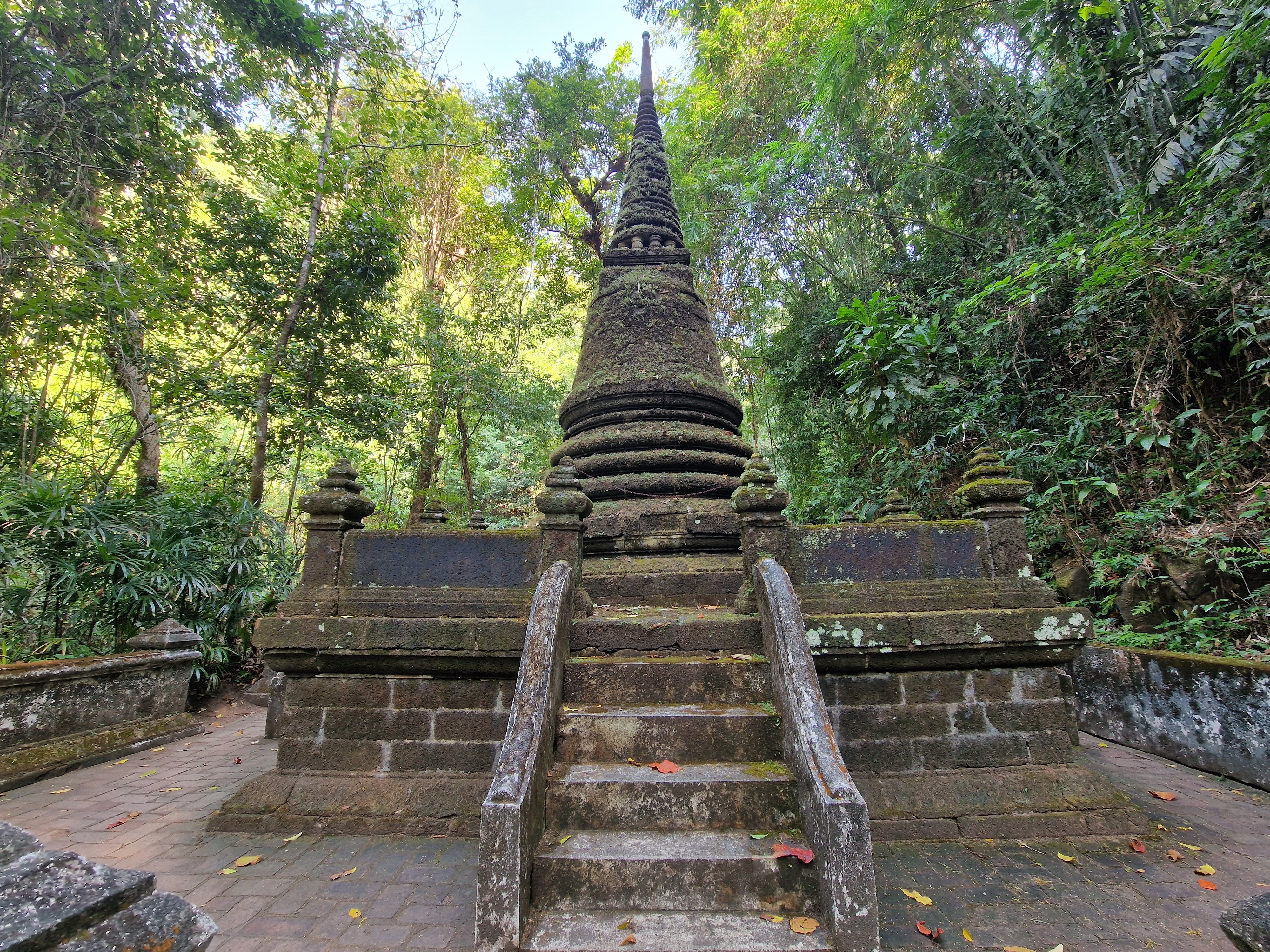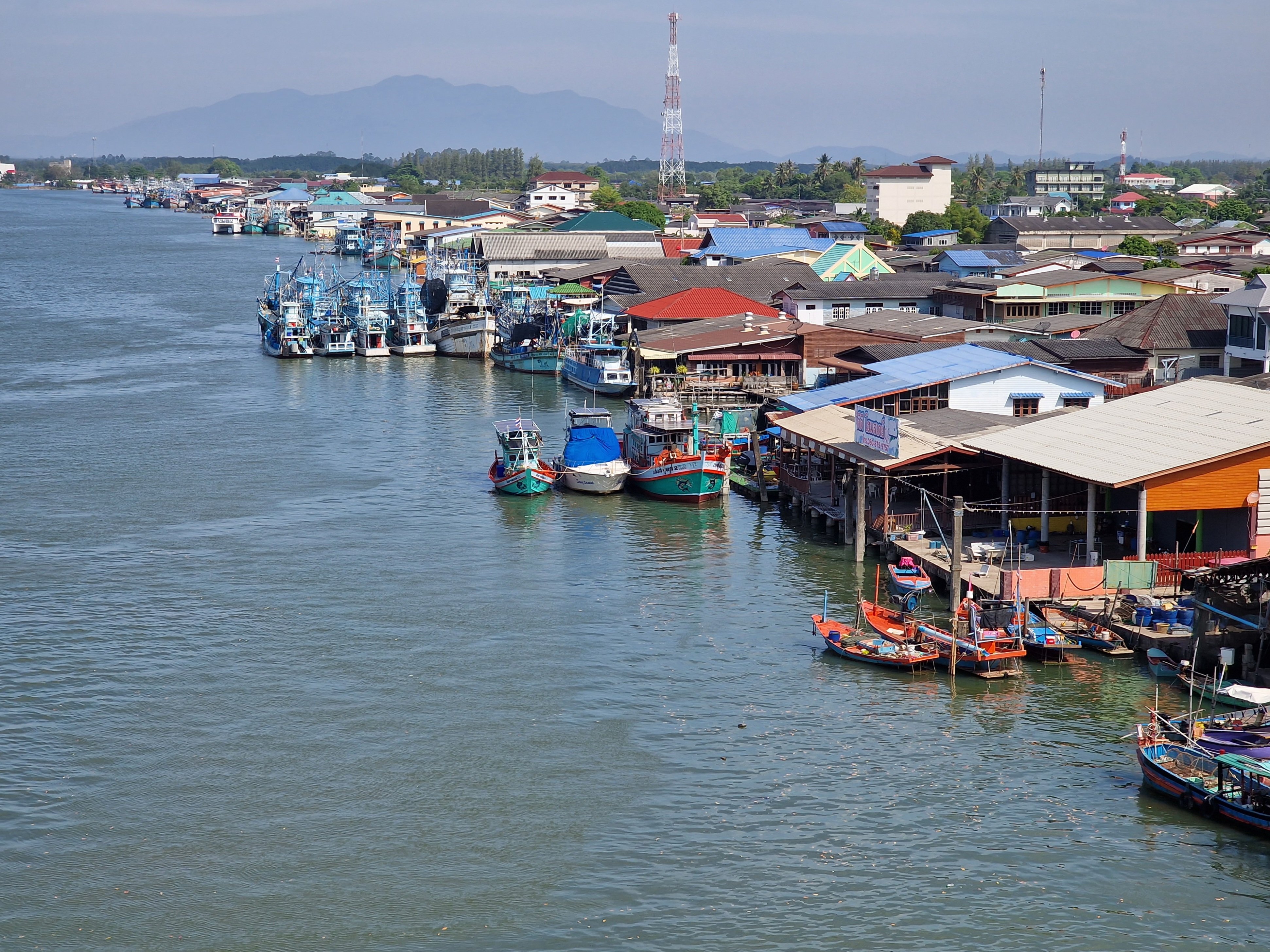 De tuin bestaat uit een aantal moeraseilanden die verbonden zijn met houten brugjes. Het landschap is niet uitzonderlijk spectaculair, maar het is heel aangenaam vertoeven in dit stukje natuur. Het is een mooi rustpunt tussen het Thaise verkeer van de vorige dagen. De brugjes zijn ook een dingetje: nog geen meter breed, geen borstwering en enkele 10-tallen meters lang. Op zich geen punt om er met beladen fiets over te rijden, maar ik behoed me opzij te kijken want ik wil het ondiepe water niet inrijden. Op het tweede brugje neemt een fotograaf huwelijksfoto’s van een mooi uitgedost jong stel. Met wat onhandig gesukkel en een verontschuldigend lachje wring ik me voorbij het koppeltje. Het laatste eiland laat ik voor wat het is want het pad ernaartoe staat onder water en ik kan niet inschatten hoe diep het precies is en hoe dik de onderliggende slijklaag is. Safety first – en het is ook nog wat vroeg om mijn 5-dagen oude fiets erdoor heen te jagen.