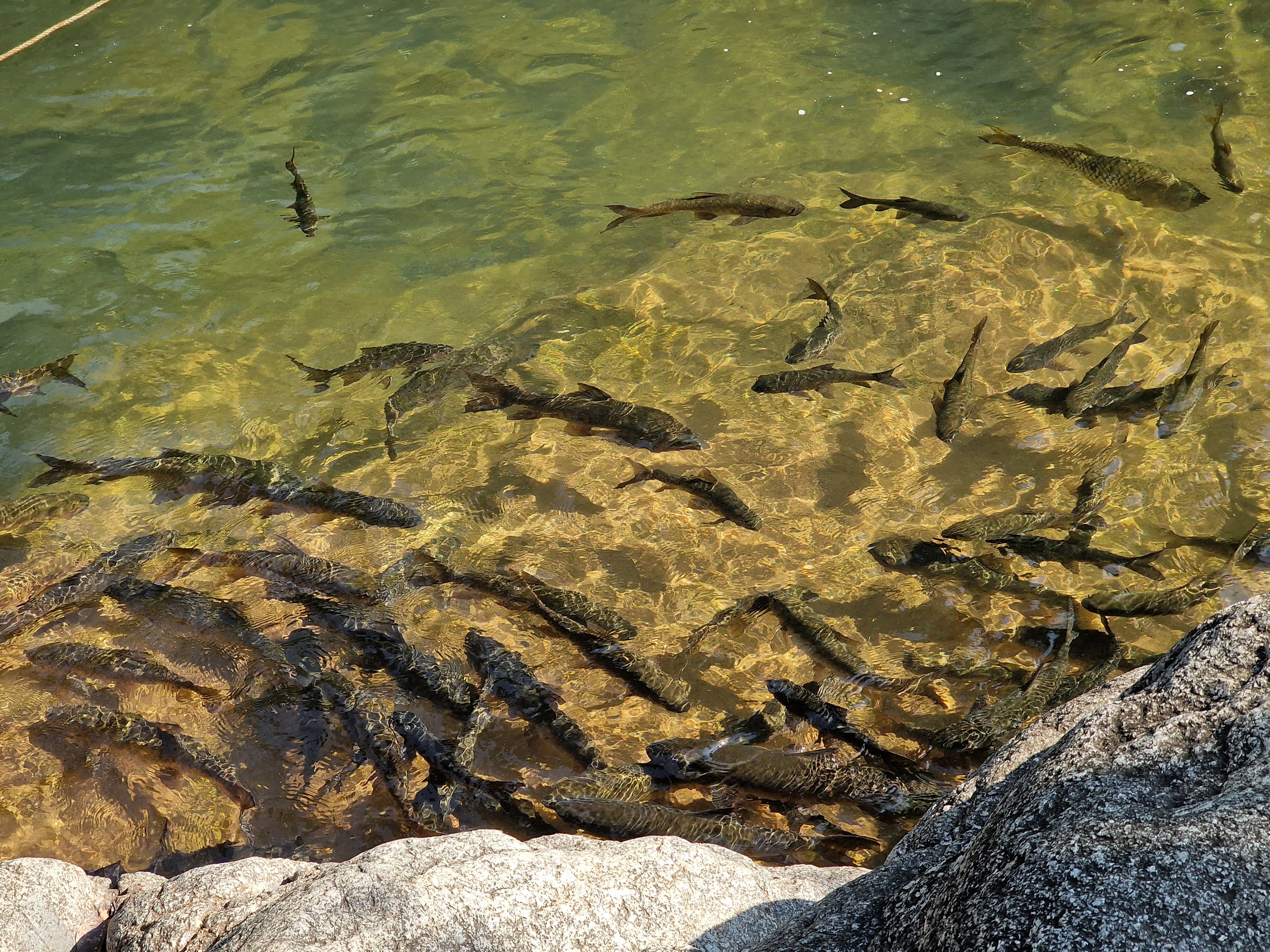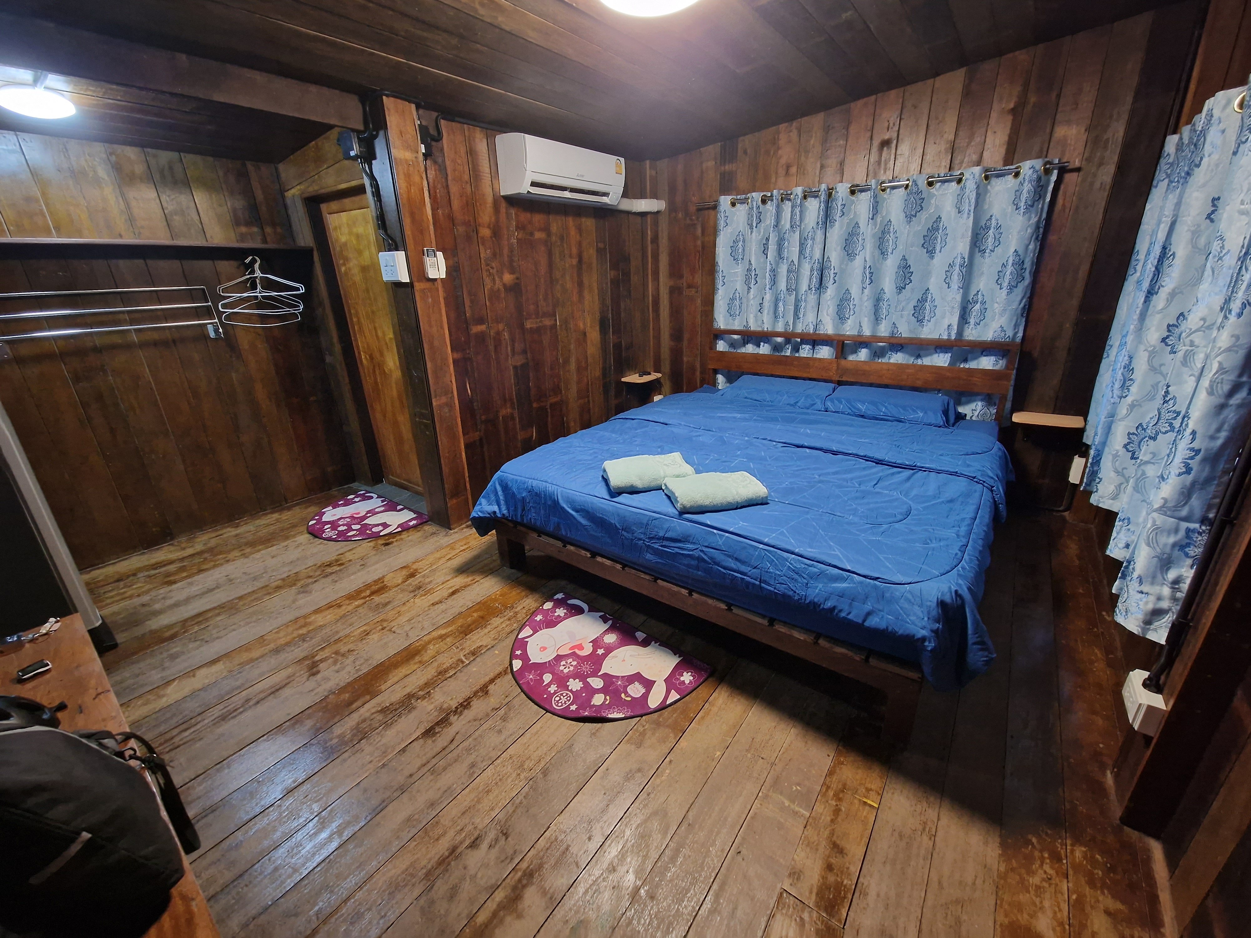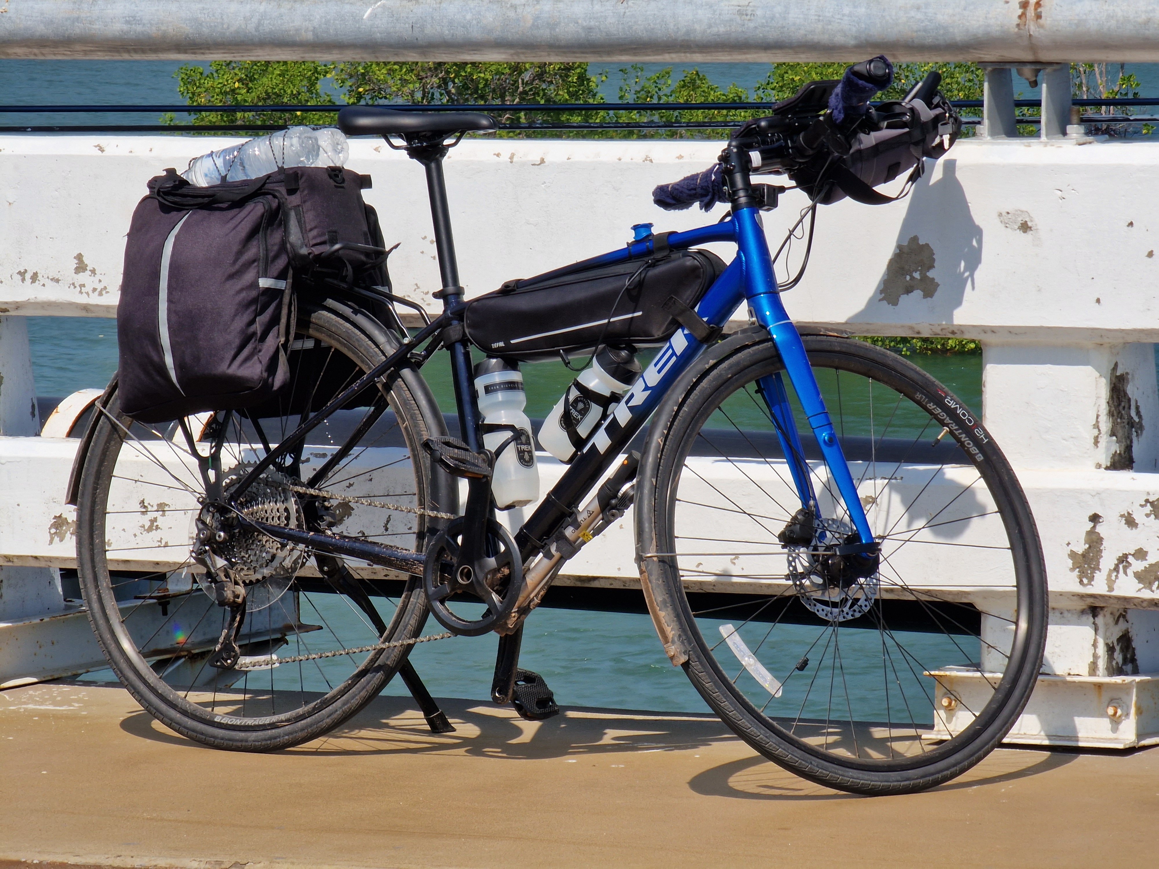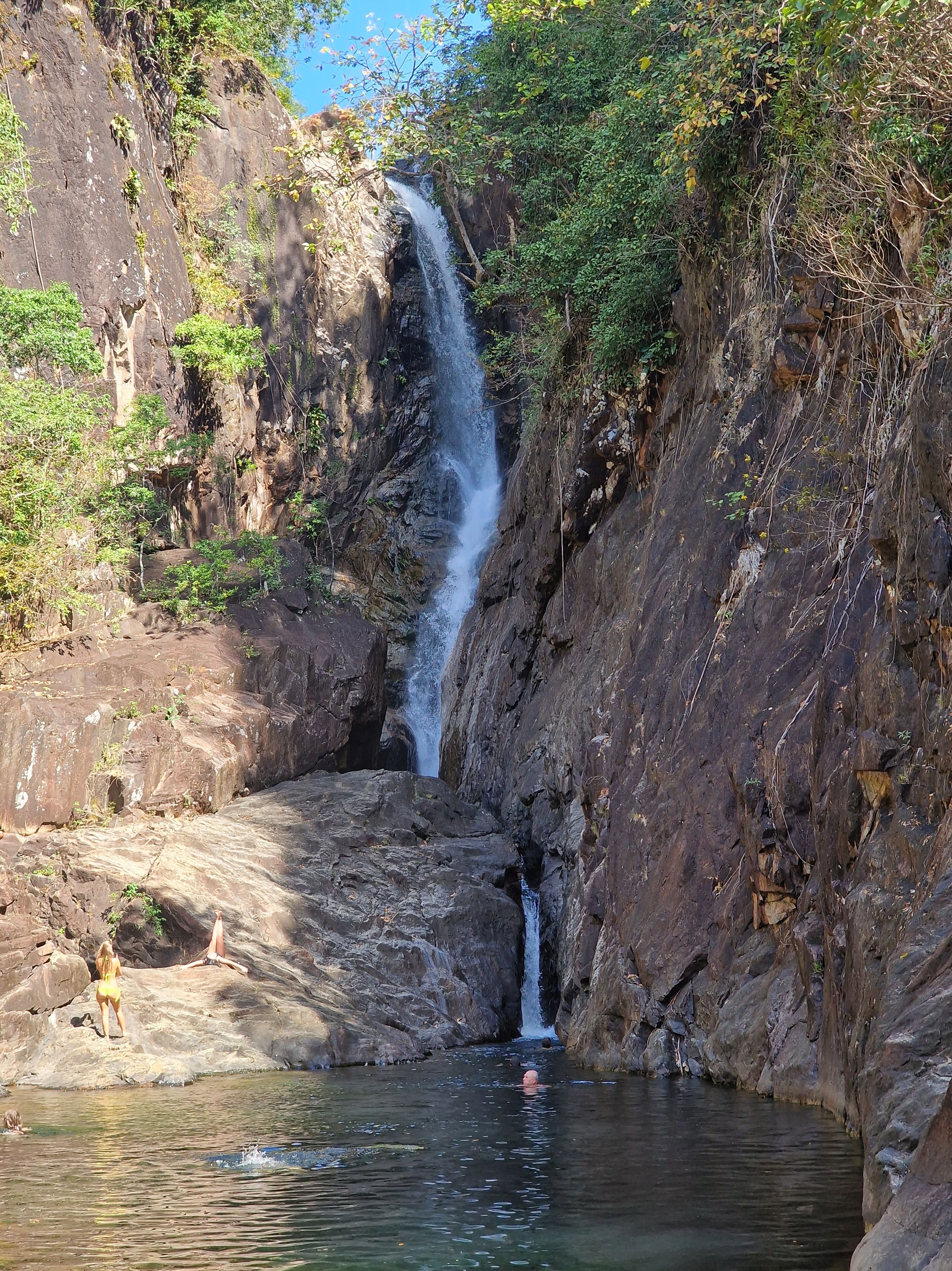De tuin bestaat uit een aantal moeraseilanden die verbonden zijn met houten brugjes. Het landschap is niet uitzonderlijk spectaculair, maar het is heel aangenaam vertoeven in dit stukje natuur. Het is een mooi rustpunt tussen het Thaise verkeer van de vorige dagen. De brugjes zijn ook een dingetje: nog geen meter breed, geen borstwering en enkele 10-tallen meters lang. Op zich geen punt om er met beladen fiets over te rijden, maar ik behoed me opzij te kijken want ik wil het ondiepe water niet inrijden. Op het tweede brugje neemt een fotograaf huwelijksfoto’s van een mooi uitgedost jong stel. Met wat onhandig gesukkel en een verontschuldigend lachje wring ik me voorbij het koppeltje. Het laatste eiland laat ik voor wat het is want het pad ernaartoe staat onder water en ik kan niet inschatten hoe diep het precies is en hoe dik de onderliggende slijklaag is. Safety first – en het is ook nog wat vroeg om mijn 5-dagen oude fiets erdoor heen te jagen.
