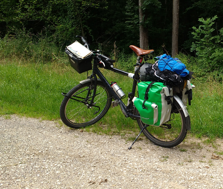 Met die fiets, belast met 4 canvas Slee-fietstassen, een pseudo-leger-pukkel voorop en de tent op de bagagedrager (fiets + bagage woog toen meer als ikzelf) reed ik in 1976 in 9 dagen van Utrecht naar Zuid-Bretagne.