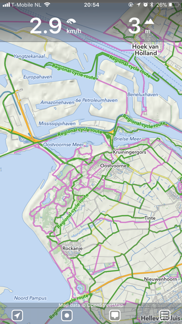 Je eigen route en de routes van anderen die gratis en voor niets in je app verschijnen als je dat wilt. Kan je ook uitzetten. Bron is open source data.