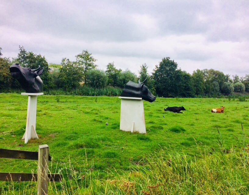 Het doet hier landelijk en dorps aan en al direct trekt mijn aandacht naar een kunstwerk in het weiland: