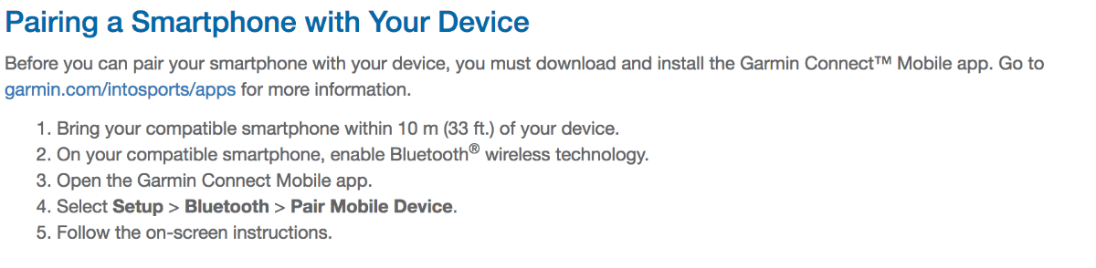 Bluetooth wordt blijkbaar gebruikt om met de app Garmin Connect te communiceren (en daar kan je wel fitness gegevens en notificaties mee uitwisselen maar geen tracks).