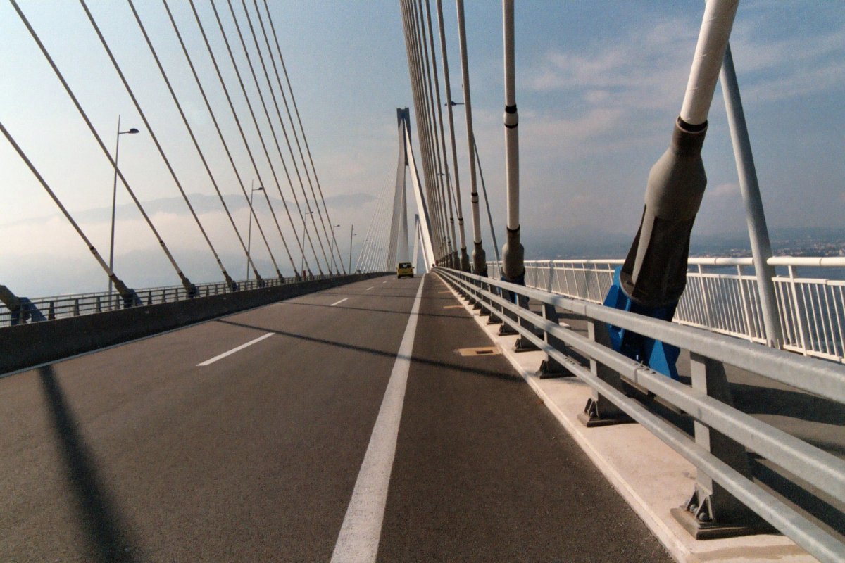 Dan is deze bij Patras (Gebouwd in aanloop naar de Olympische Spelen) ook een hele mooie, omdat het pad naast de brug aan het begin door een pilaar geblokkeerd werd ben ik maar gewoon op de weg gaan fietsen.