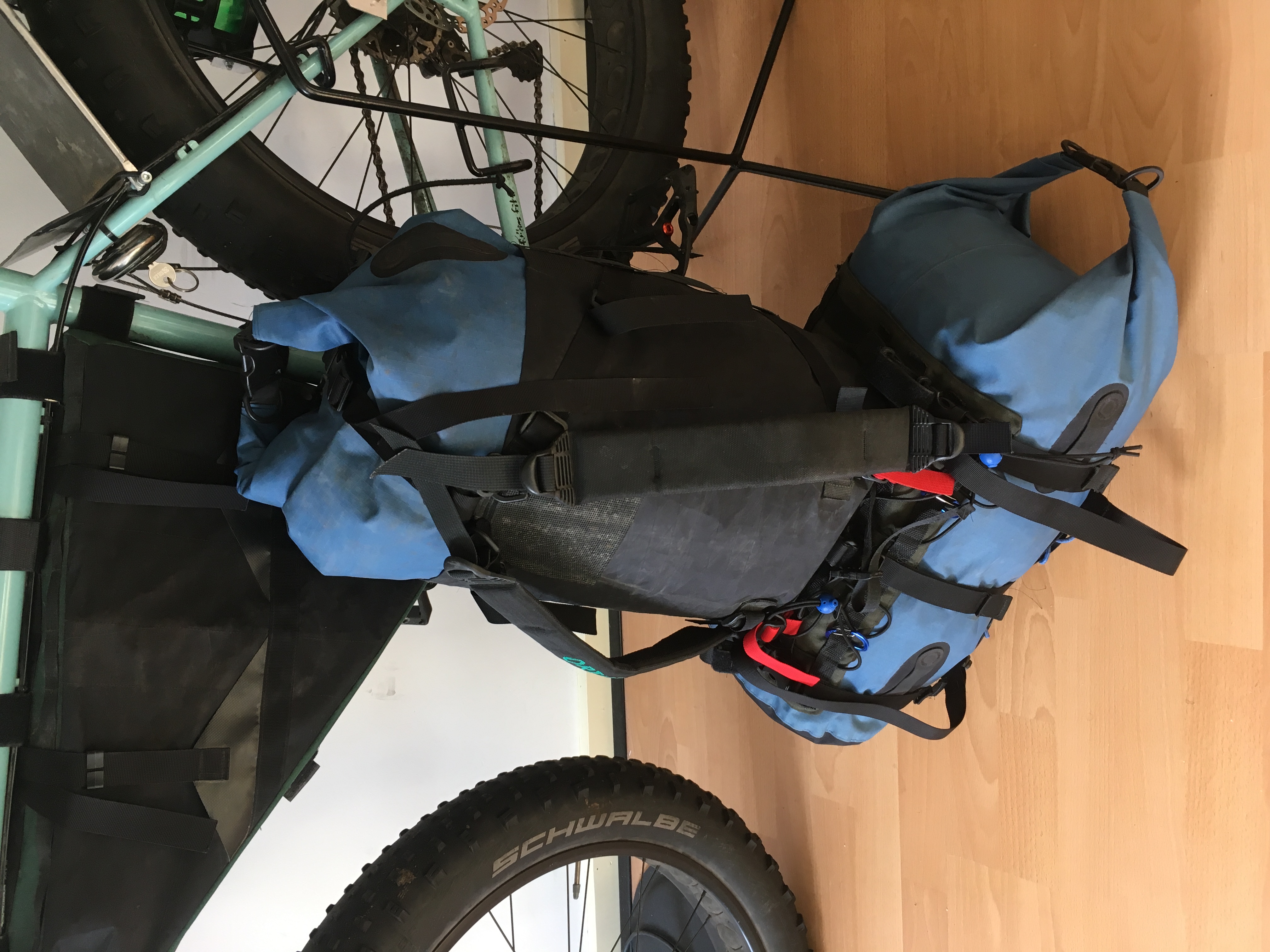 De afgelopen jaren heb ik vooral met de bob-yak offroad tochtjes gemaakt, zoals (delen van) de TNNZ. Qua inpakken is dat geen hogere wiskunde. Met de 89L drybag van de bob hoef je je nooit af te vragen hoe je alles mee krijgt.