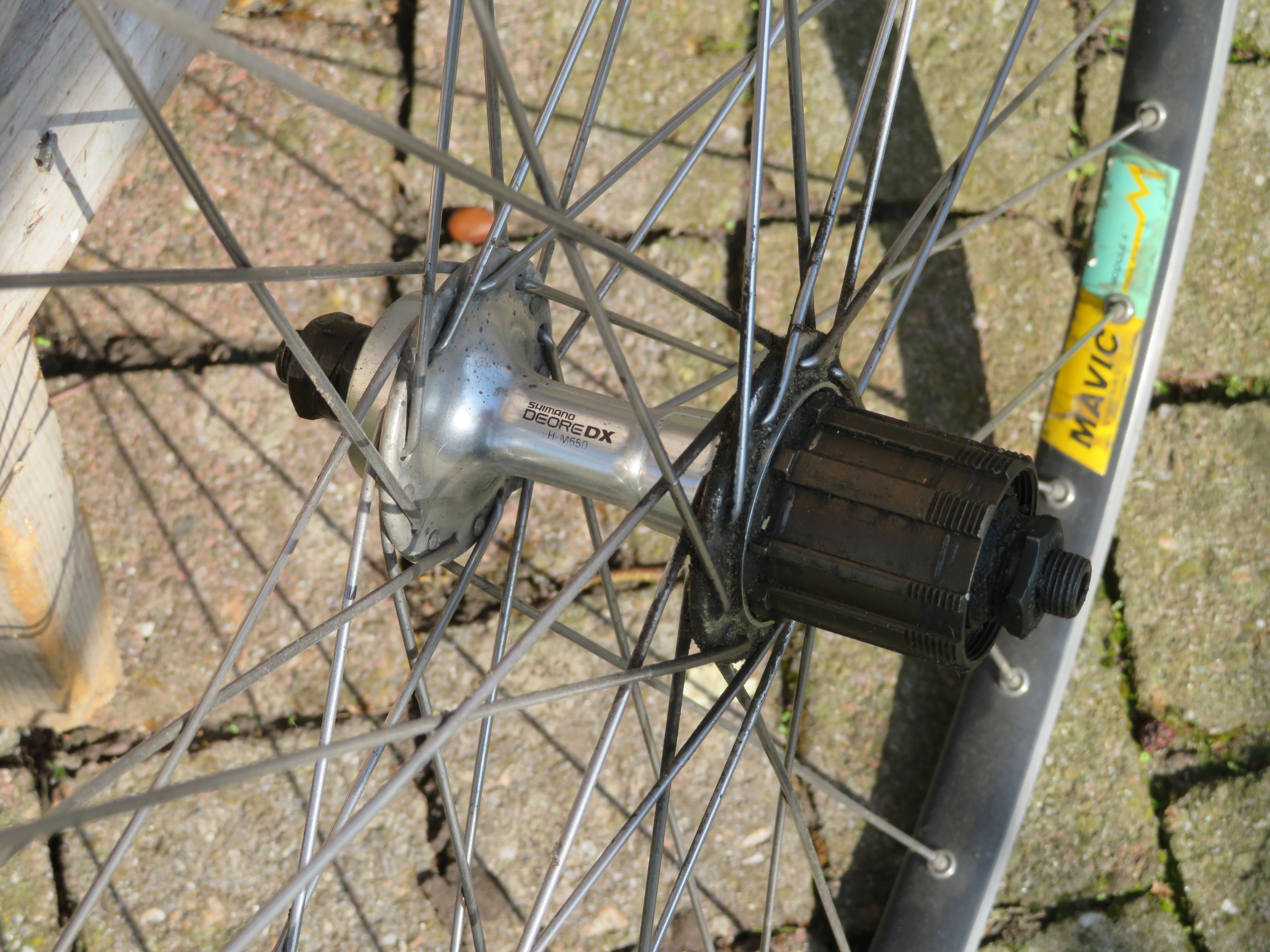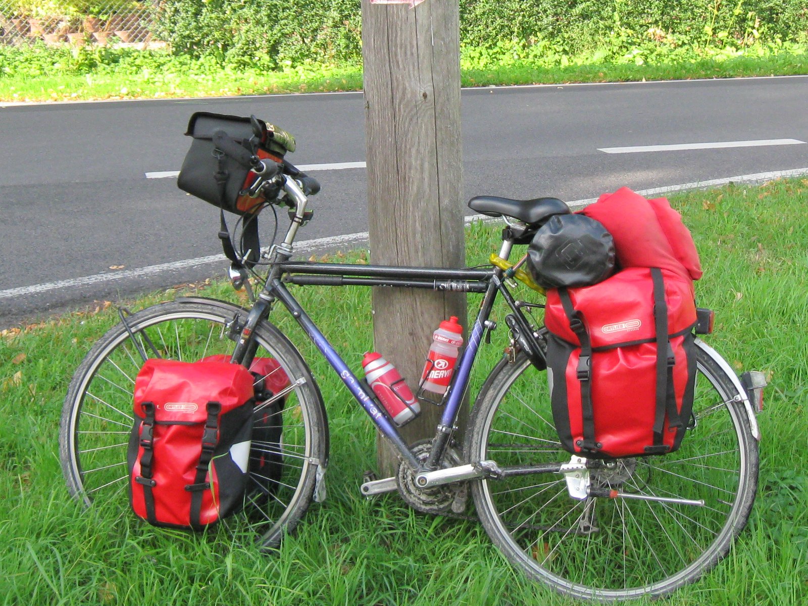 Hier nog wat specificaties. Framemaat is 54cm chrome molybdeen triple butted, 28 inch Mavic double butted velgen, Deore DX naven, cantilever remmen, achter cassette 7 versnellingen, voorblad 3 maal, banddynamo, verlichting, pomp, achterstandaard, zadel, zadelpen, spatborden, stuurpen, stuur, kortom helemaal compleet op de bagagedragers en banden na.