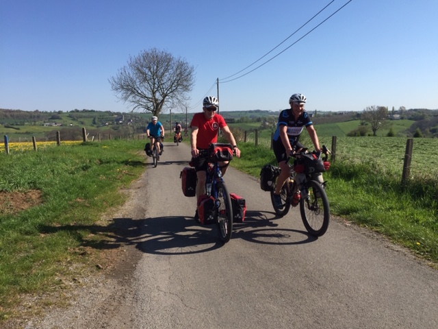 Pasen is voor velen het eerste fietskampeerweekend na de winter. Ook wij hadden sinds oktober niet meer in heuvelachtig terrein gefietst, dus onze klimspieren moesten uit de slaapstand worden gewekt. Dat kan door ze rustig te laten wennen op een mild hellend traject, maar je kunt ook kiezen voor shocktherapie door gelijk een berggeitentocht op het menu te zetten. Organisator Ton koos voor het laatste: meteen de beuk erin door voortdurend op en neer te gaan met als resultaat 1300 hoogtemeters. Op verzoek van velen was er ook een wat korter alternatief, dat weliswaar onder de 1000 hoogtemeters bleef, maar ook een onrustig hoogteprofiel had.