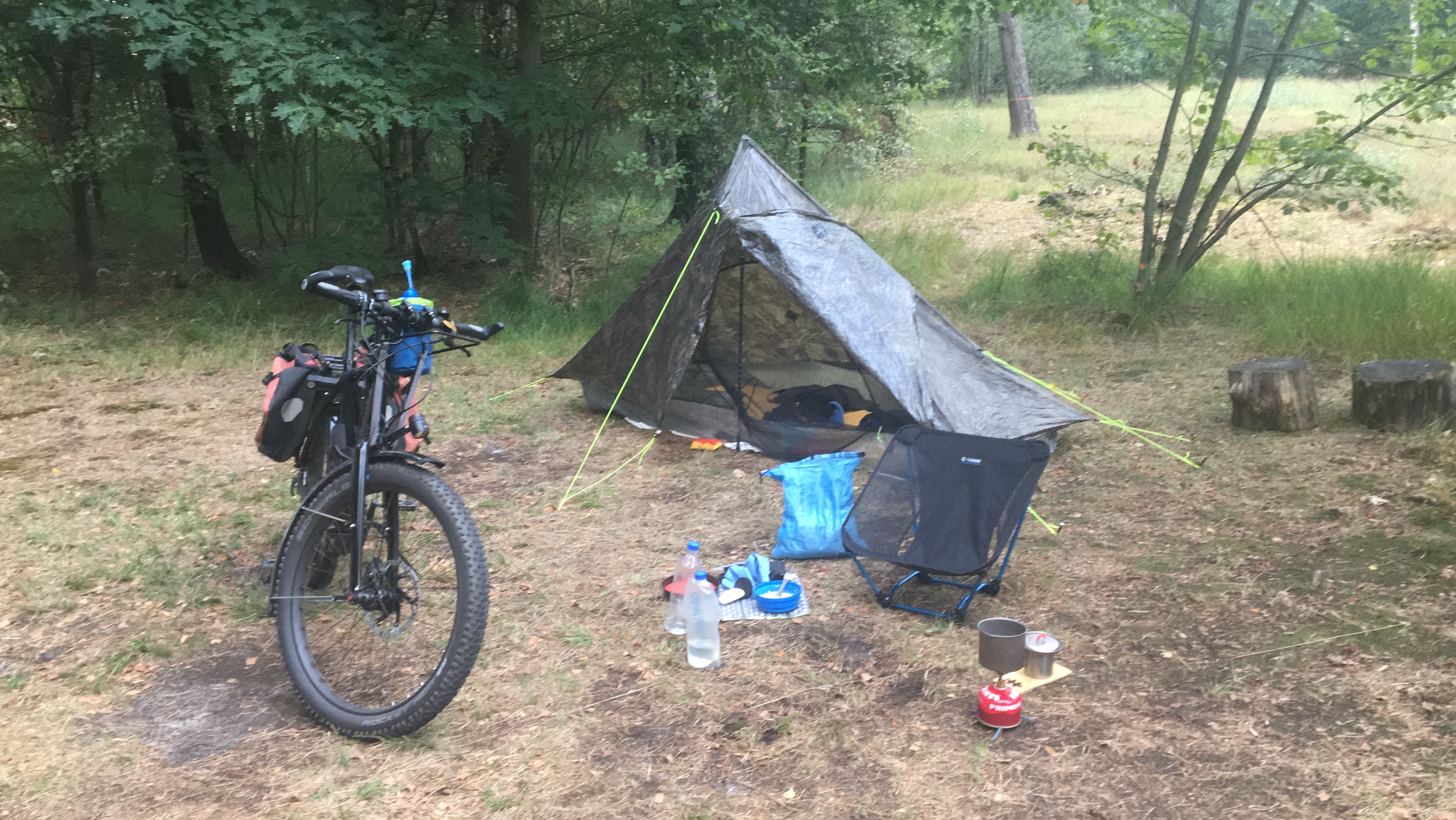 De tent is volledig getapet. Hij is gemaakt van (DCF) Dyneema Composite Fabric ook wel Cuben Fiber. De tent is zonder haringen of tentstok gekocht. Als tentstok heb ik een wandelstok gebruikt die ik aan het frame kon binden. De tent is nu vervangen door een ander type tent, Plexamid. De foto’s ect en verdere gegevens zijn nog wel te vinden op de website van Zpacks.