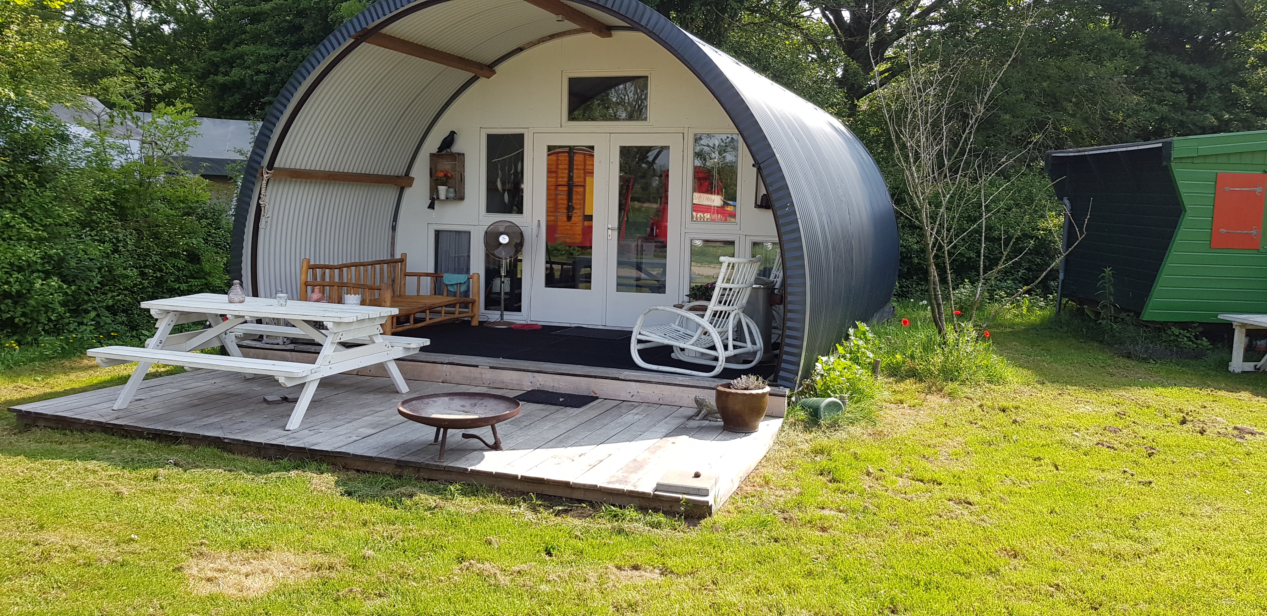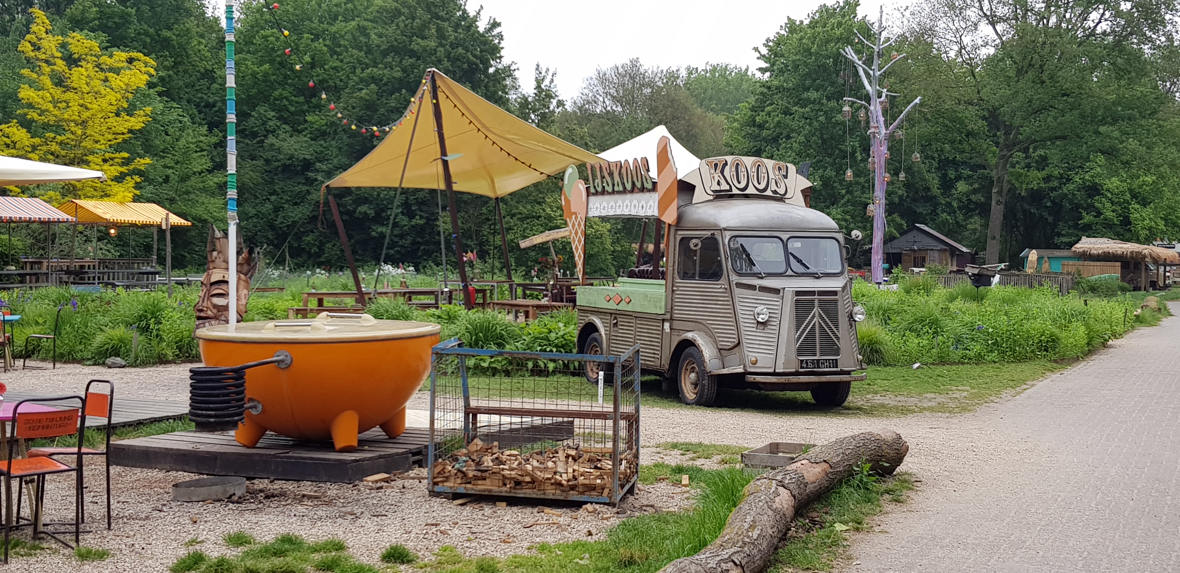 Nou deze dus...(elders op dit forum lukte het niet een antwoord te formuleren op onderstaande vraag) Ik vond de foto te grappig om 'm jullie te onthouden. En ook de camping. Een hippiecamping ben ik geneigd te zeggen maar wel met een on-hippie achtige perfectie. Ik was echt onder de indruk.