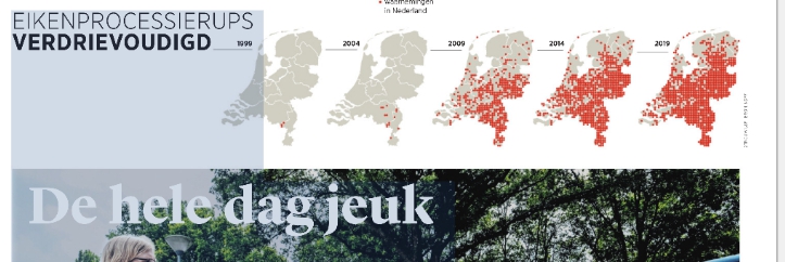 De eikenprocessierups is - net als de teek - aan een stevige opmars bezig. In 2018 werd de rups in Leeuwarden aangetroffen, terwijl men er toen nog grotendeels van uit ging dat het een Belgisch/Limburgs probleem was. Ze kwamen vooral voor in eiken die niet in kluitjes wonen, dus langs fietspaden en op campings, maar intussen blijken ze hun opmars ook in de bossen te maken hetgeen daarmee ook een argument voor wildkamperen ontkracht.