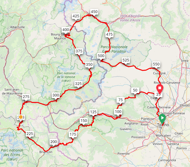 Nadat er geen fietsplekken in snelle treinen vanaf Nice bleken te zijn (waardoor de terugreis maar liefst 3 dagen zou gaan duren), heb ik een plan B gemaakt. Van Genève (dat nog redelijk snel per trein te bereiken is) naar Briançon via de 'Toffel-light'-route en dan terug over de Col du Galibier, Madeleine en Joly.