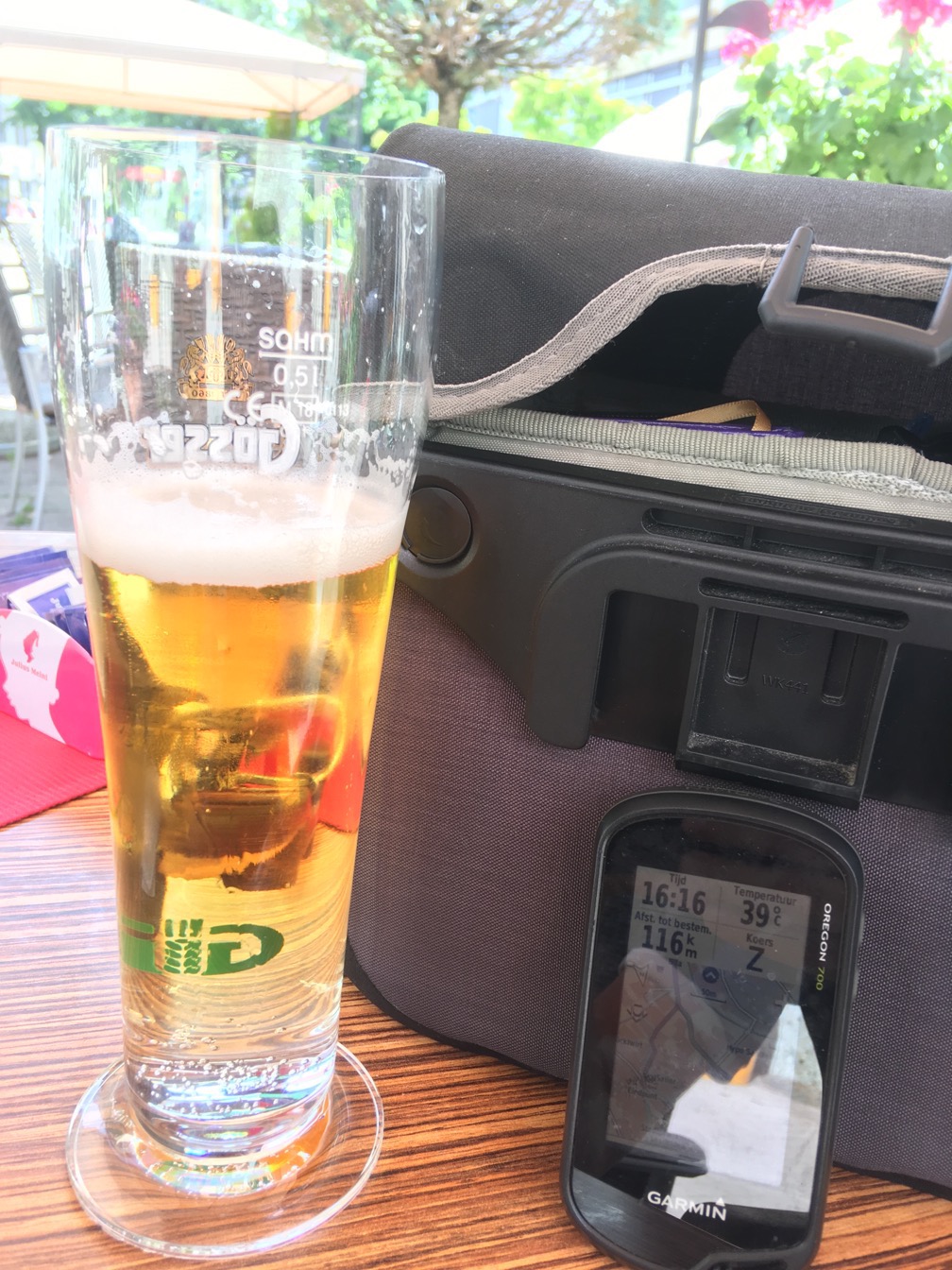 Helaas wordt het hier in Diekirch nog één graad warmer dan in Den Bosch. Zweten dus. Goed insmeren, veel drinken, en rustig de geplande beklimmingen volbrengen is het devies. En vanavond een koud biertje!