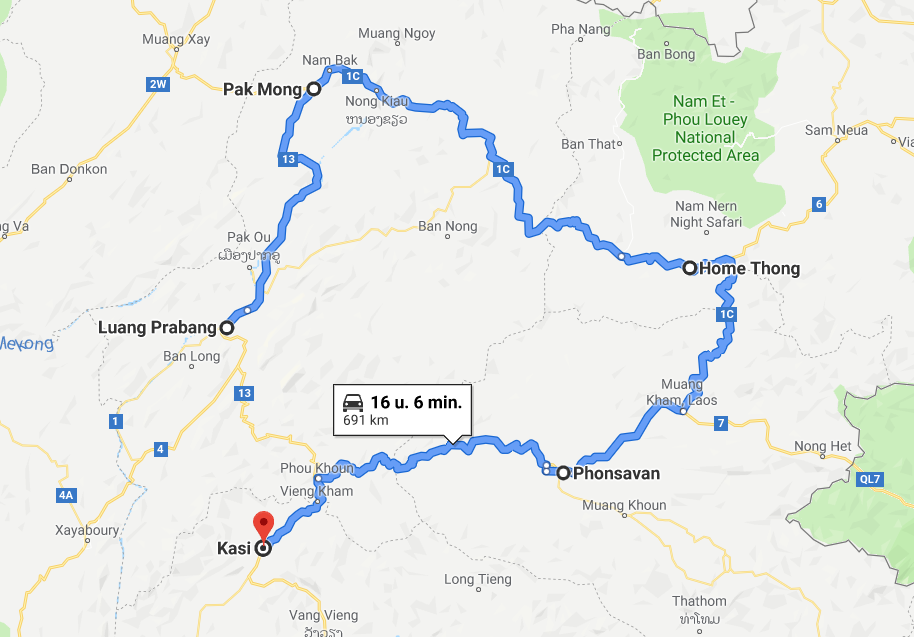Ik denk aan de route: Luang Prabang - Pak Mong - Home Thong - Phonsovan - Kasi