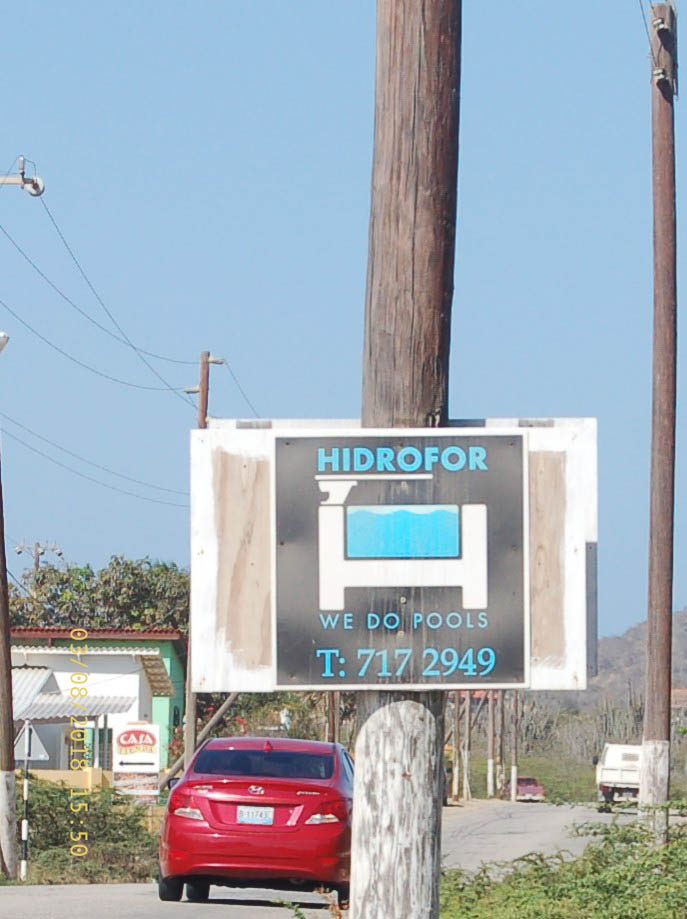 Kijk, deze foto maakte ik vorig jaar op Bonaire. Laatst was ik er weer en toen hing 'ie er nog steeds! Kennelijk heeft zwembadbedrijf Hidrofor ook ontevreden klanten