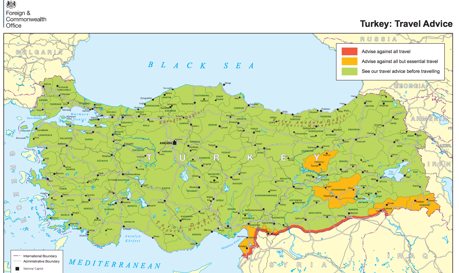 Ik zit wat rond te kijken voor mijn volgende lange tocht, richting Armenië. Zou bij het dwarsen van Turkije graag een eerder zuidelijke route volgen: Kapadocië, Nemrut Dagi, Diyarbakir, Vanmeer. Nu zie ik dat Buitenlandse Zaken negatief reisadvies geeft voor de hele Zuidoostelijke regio - Koerdistan (zelfs noordelijk tot Kars). Individuele reacties van reizigers links en rechts op het internet relativeren de risico's en suggereren dat enkel wildkamperen er misschien over is.