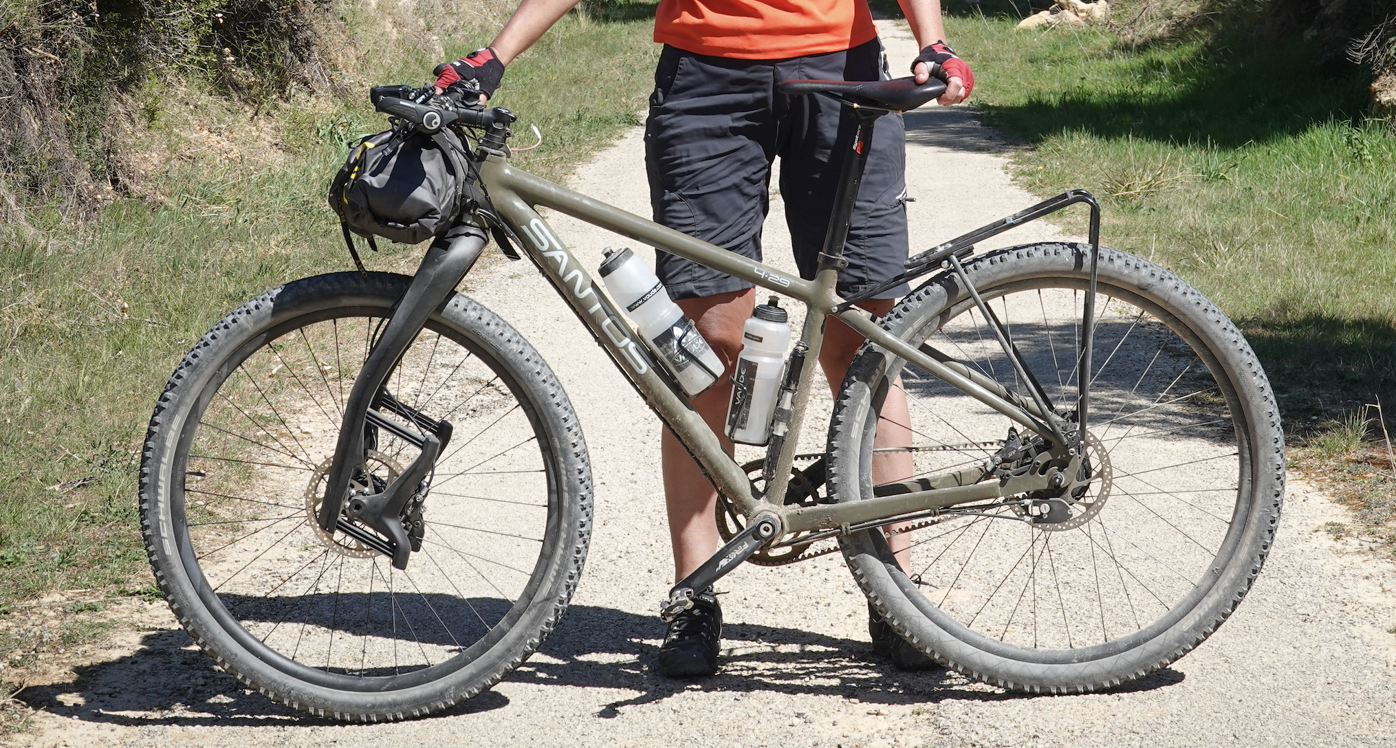 Ik reken water ook altijd als een soort van basisgewicht. (3 kilo) Hebben jullie altijd genoeg aan de bidons op het frame of plaatsen jullie ook waterflessen wel eens in de achtertassen.