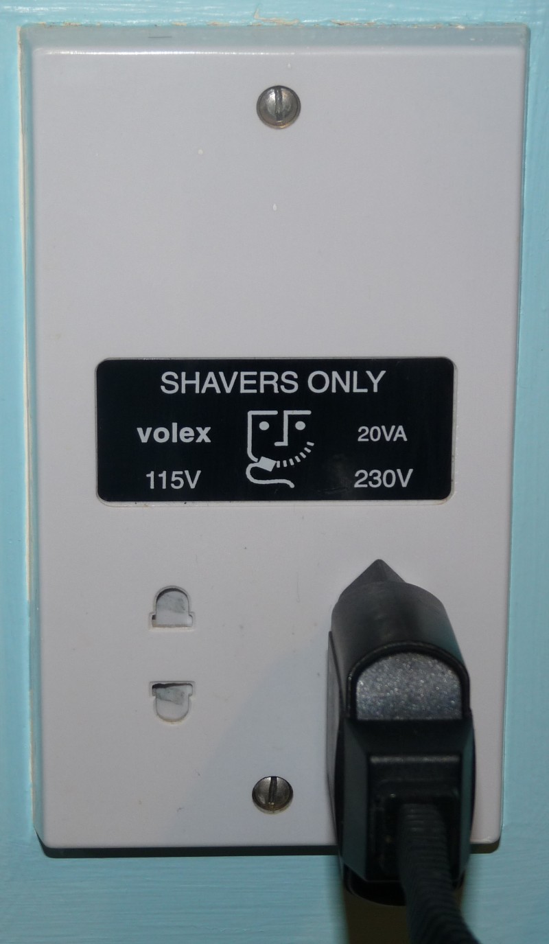 Ik noem dan ook specifiek een scheercontactdoos, met ingebouwde scheidingstrafo, die je nog vrij veel op campings tegen komt. Deze heeft meestal een output van 20VA, wat betekent dat ie max minder dan 0,01A levert, en daarmee krijg je de meeste laders niet aan de gang.