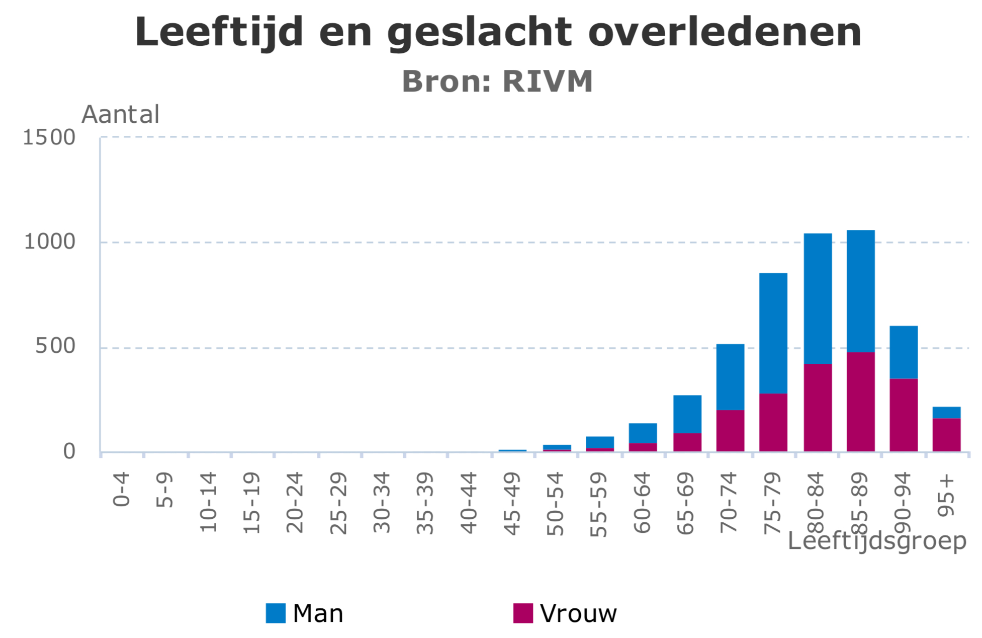 Ik zie een grafiek met aantal overlijden uitgezet tegen leeftijdsgroepen.