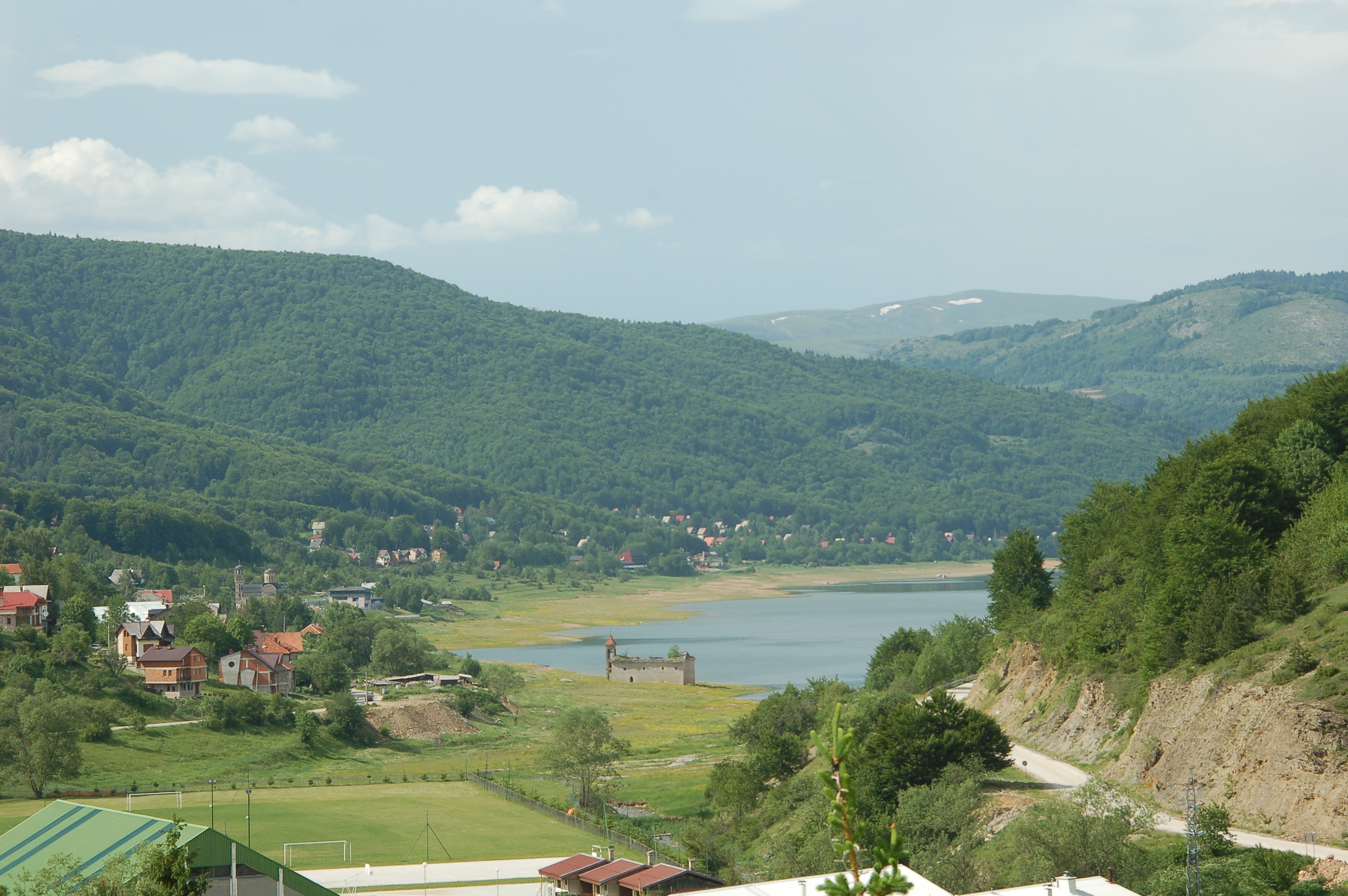 De ruïne op de voorgrond is de oude kerk van Mavrovo (van St. Nikolaas) en de nieuwe heet gewoon weer St. Nikola. De oude verdween in het stuwmeer in 1953 en is alleen te voet te bezichtigen als het water (door droogte) in het meer laag staat. https://en.wikipedia.org/wiki/Mavrovo_L ... summer.jpg