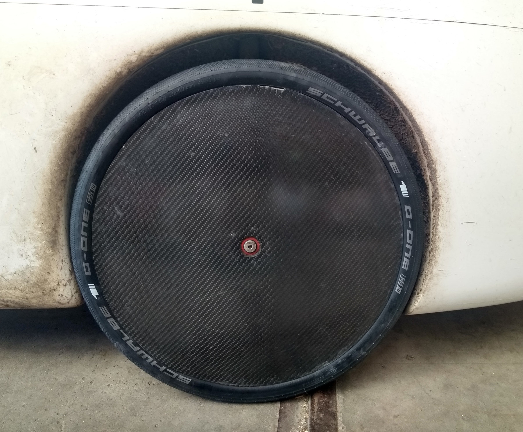 Twee nieuwe banden Schwalbe G-One 40-406. Past precies in de wielkast. Na 90km ervaring: rijdt geweldig comfortabel en licht, beter dan wat ik voorheen allemaal heb gehad op deze fiets, een aanrader. Verkrijgbaar in 20", 26" (584mm) en 28" en verschillende breedtematen. Hopelijk gaat grip op nat wegdek en enige robuustheid ook meevallen, ik ga het zien.